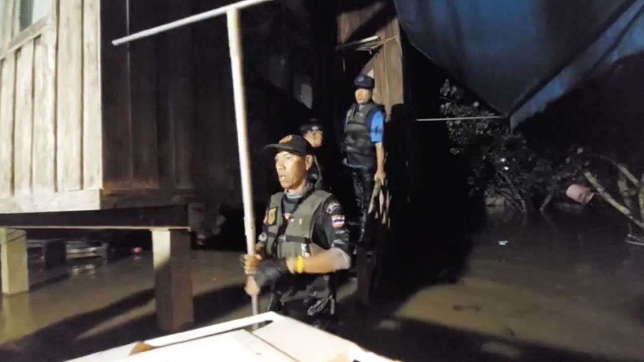 "บิณฑ์ บันลือฤทธิ์" นำทีมกู้ภัย ลงช่วยผู้สูงอายุ 2 ริมฝั่งแม่น้ำวังออกจากบ้าน หลังมวลน้ำป่าจำนวนมากไหลทะลักลงโซนใต้เข้า อ.เกาะคา จ.ลำปาง