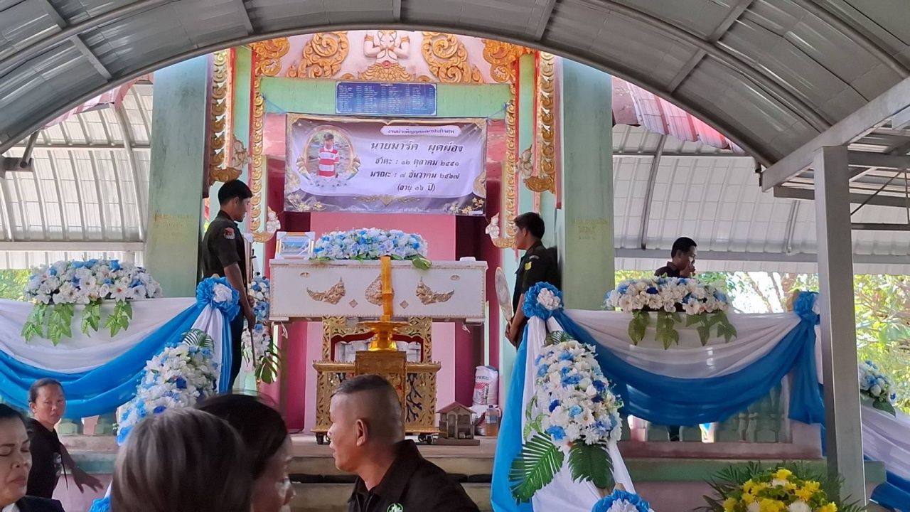 วันที่ 11 ธ.ค. 67 ที่วัดฆ้อง ม.9 ต.คลองแม่ลาย อ.เมือง จ.กำแพงเพชร นายโชคชัย รักเกื้อ นายอำเภอเมืองกำแพงเพชร พร้อมด้วยนายมีโชค เกษมสุข นายก อบต.คลองแม่ลาย เหล่านักเรียน ผู้นำชุมชน และชาวบ้าน กว่า 150 คน เดินทางเข้าร่วมส่งดวงวิญญาณของ น้องมาร์ค นักเรียนชั้น ม.3 โรงเรียนสักงามวิทยา นักฟุตบอล ที่เสียชีวิตจากอุบัติเหตุรถยนต์กระบะแหกโค้ง ในพื้นที่บ้านดงตาจันทร์ ท่ามกลางความเศร้าโศก
