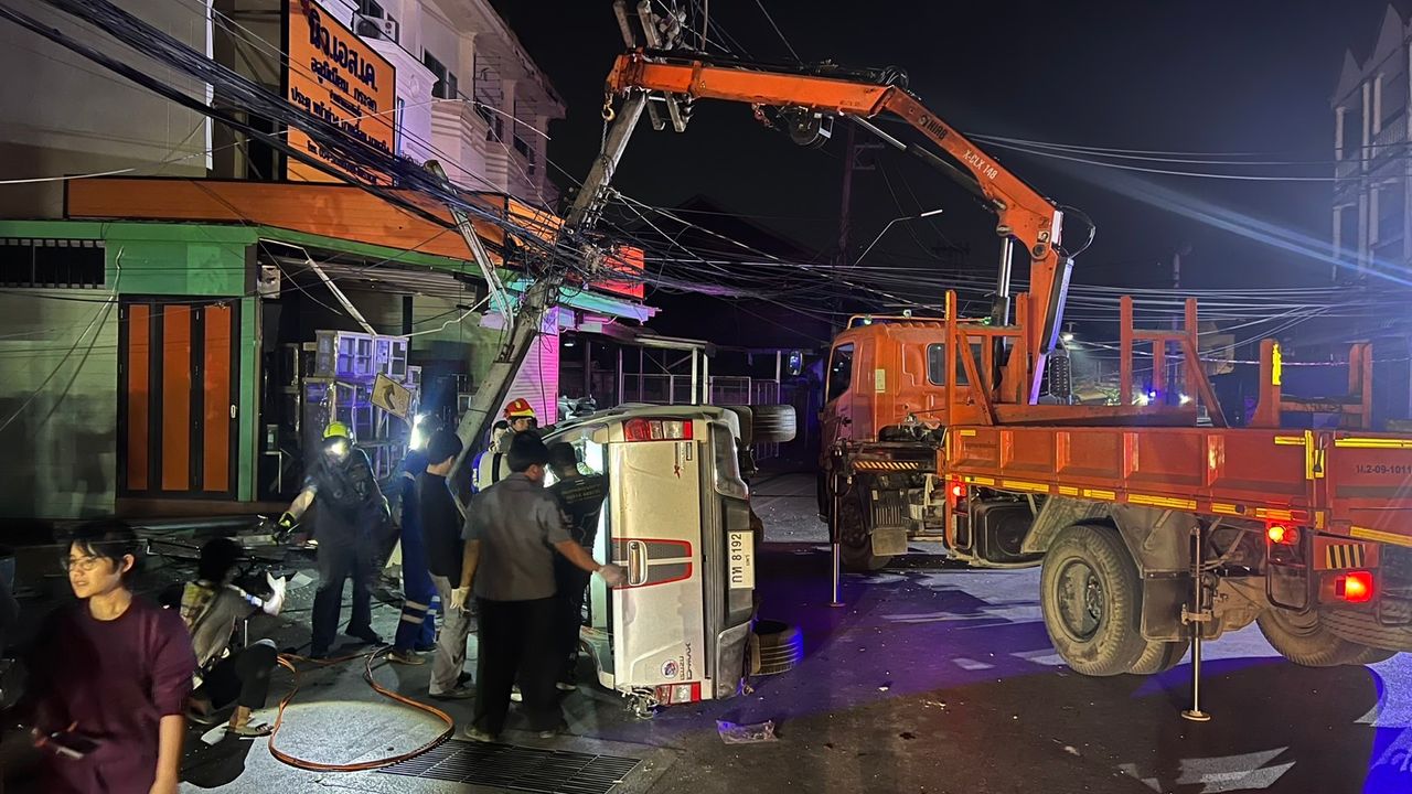 กระบะ 4 ประตู พุ่งชนเสาไฟฟ้า พลิกคว่ำตาย 2 เจ็บ 2 ที่แพร่ ญาติตกใจเพิ่งรู้เอารถออกมากลางดึก ขณะที่ชาวบ้านเล่านาทีเกิดเหตุ