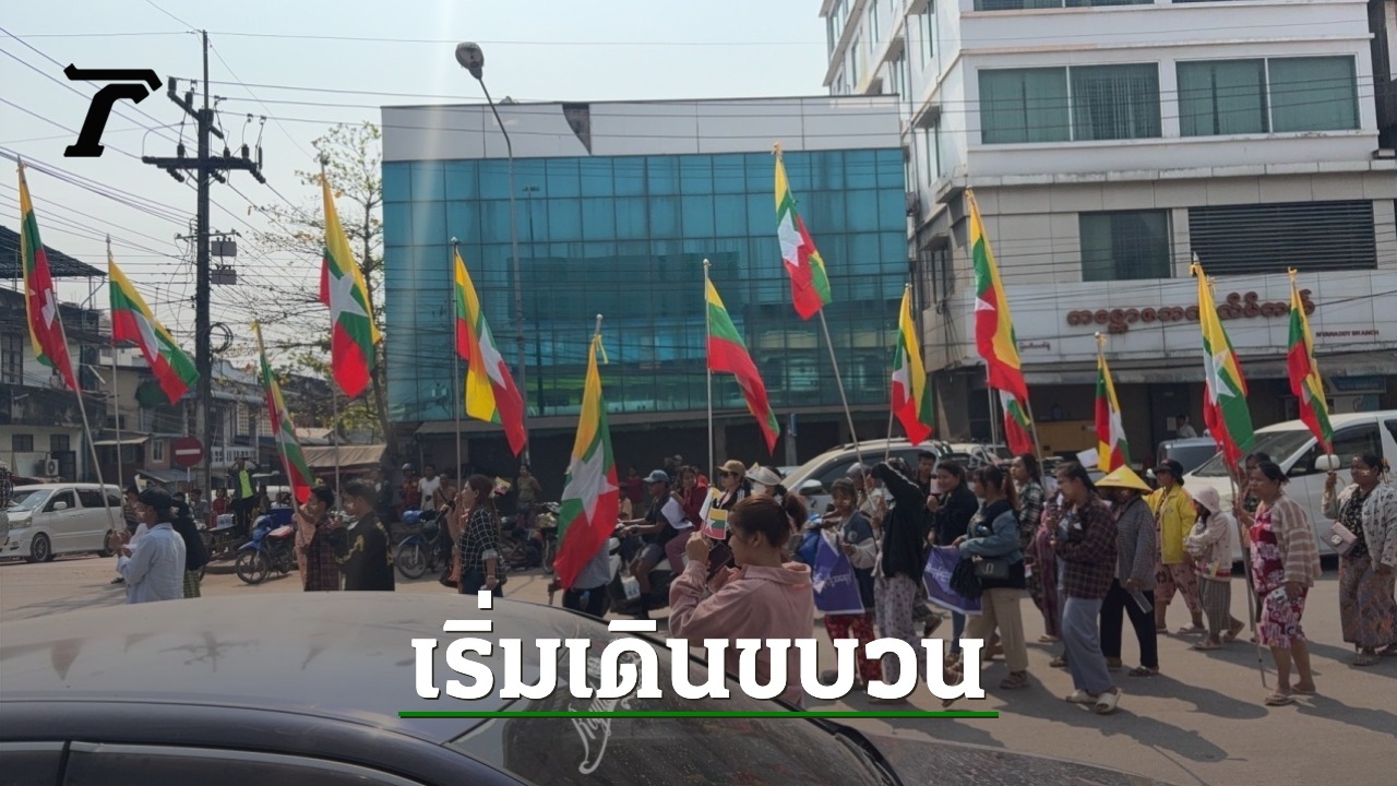 โดยผู้เรียกร้องได้ถือธงชาติ และป้าย มีข้อความที่นำมาเดินขบวน เป็นภาษาเมียนมาว่า “รณรงค์ประชาชน งดใช้สินค้านำเข้าของไทย” มีการถือธงเมียนมา และเดินเท้ามาตามถนนพร้อมมีการใช้เครื่องขยายเสียงไม่เห็นด้วยกับการใช้มาตรการตัดไฟ-ตัดสัญญาณอินเทอร์เน็ต ของฝั่งประเทศไทย ซึ่งส่งผลกระทบให้คนทั่วไปไม่มีน้ำมันใช้ ทำให้มีการกักตุนน้ำมัน ส่งผลให้ราคาน้ำมันแพงขึ้น และกระทบกับโรงพยาบาลที่ต้องรักษาผู้ที่ป่วย
