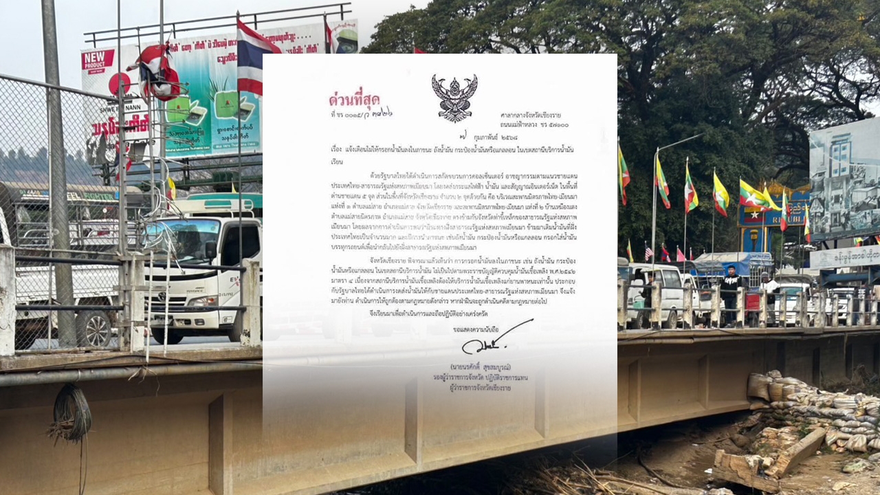 เชียงราย ออกหนังสือด่วนที่สุด ห้ามนำแกลลอน หรือภาชนะอื่น ไปใส่น้ำมัน ให้เติมในรถเท่านั้น หลังพบว่ามีรถจากฝั่งพม่า ข้ามมาเติมน้ำมันที่ฝั่งประเทศไทยเป็นจำนวนมาก และมีการนำภาชนะ เช่น ถังน้ำมัน แกลลอนกรอกใส่น้ำมัน บรรทุกรถยนต์นำกลับไปยังประเทศพม่า