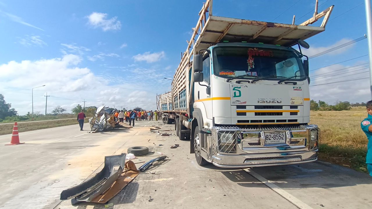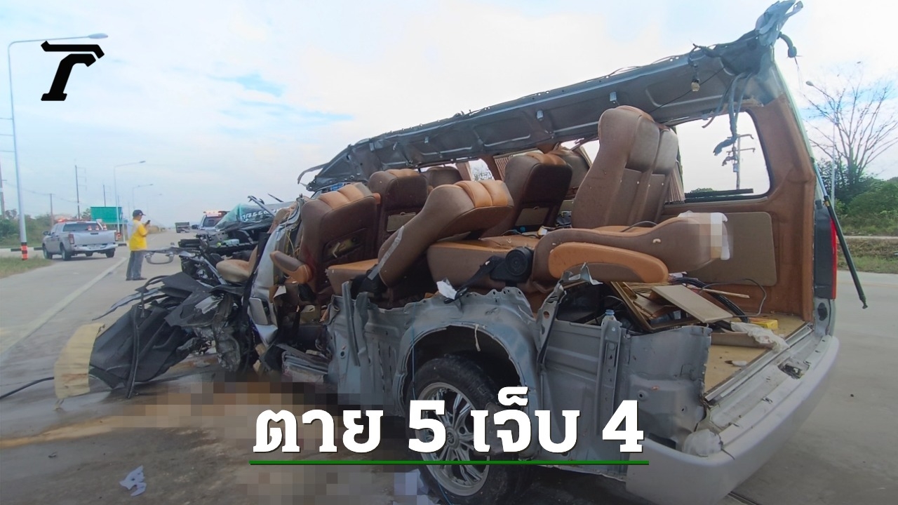 เกิดเหตุรถตู้แสวงบุญ ชนท้ายพ่วง ที่นครสวรรค์ ตัวรถฝั่งซ้ายหายไปทั้งแถบ ตาย 5 เจ็บ 4 ในผู้เสียชีวิตมีพระสงฆ์ด้วย 1 รูป