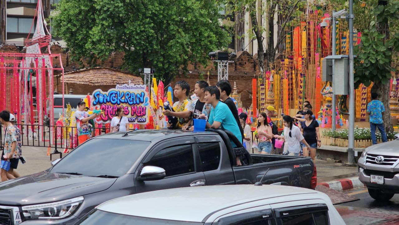 แม้ว่าวันนี้จะเป็นวันแรก แต่ก็มีนักท่องเที่ยวและประชาชนพากันออกมาเล่นสาดน้ำคลายร้อนกัน บางรายได้ขับรถกระบะบรรทุกถังน้ำพาลูกหลานออกมาสาดน้ำเล่น ทำให้บริเวณถนนท่าแพการจราจรเริ่มหนาแน่นแล้ว