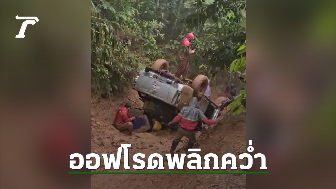 คลิปนาทีกระบะออฟโรด ไถลลงเนินปราบเซียน บนเขาที่เพชรบูรณ์ ก่อนชนเขา พลิกหงายท้อง-ล้อชี้ฟ้า โชคดีคนในรถมีอุปกรณ์นิรภัยทำให้ไม่ได้รับบาดเจ็บ