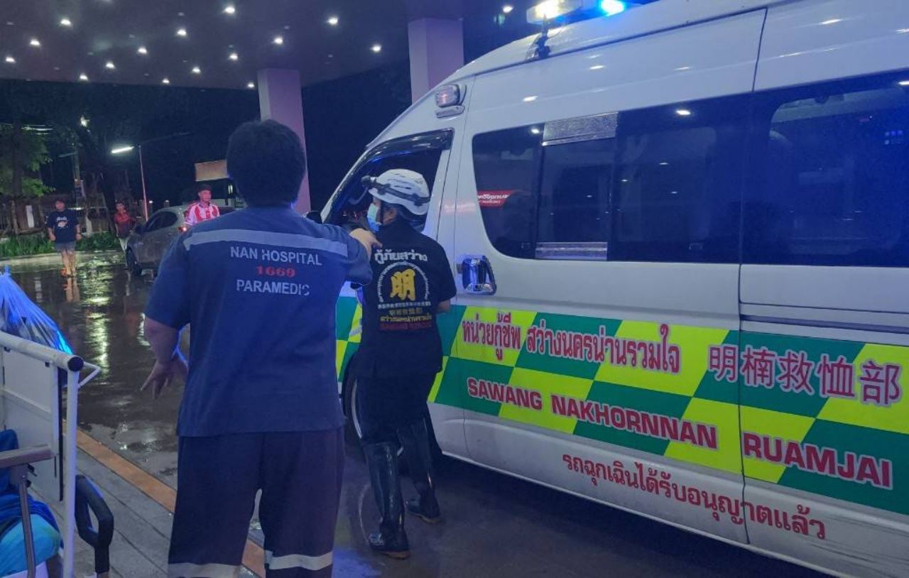 เช่นเดียวกับที่ รพ.น่าน ซึ่งมีรายงานล่าสุดว่า น้ำป่าได้ไหลทะลักเข้าท่วมโรงพยาบาลน่านแล้ว เนื่องจากพนังกั้นน้ำล้ม โดยเจ้าหน้าที่เร่งเคลื่อนย้ายผู้ป่วยหนักใส่ท่อช่วยหายใจไปยัง รพ.ใกล้เคียง และย้ายบริการห้องฉุกเฉินไปที่ฝูงบินอิสระปฏิบัติราชการสนาม 466 (น่าน) กองทัพอากาศ