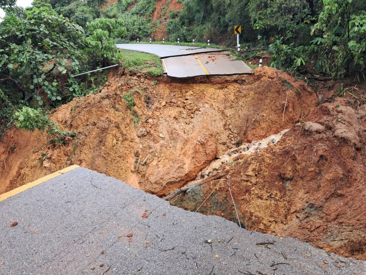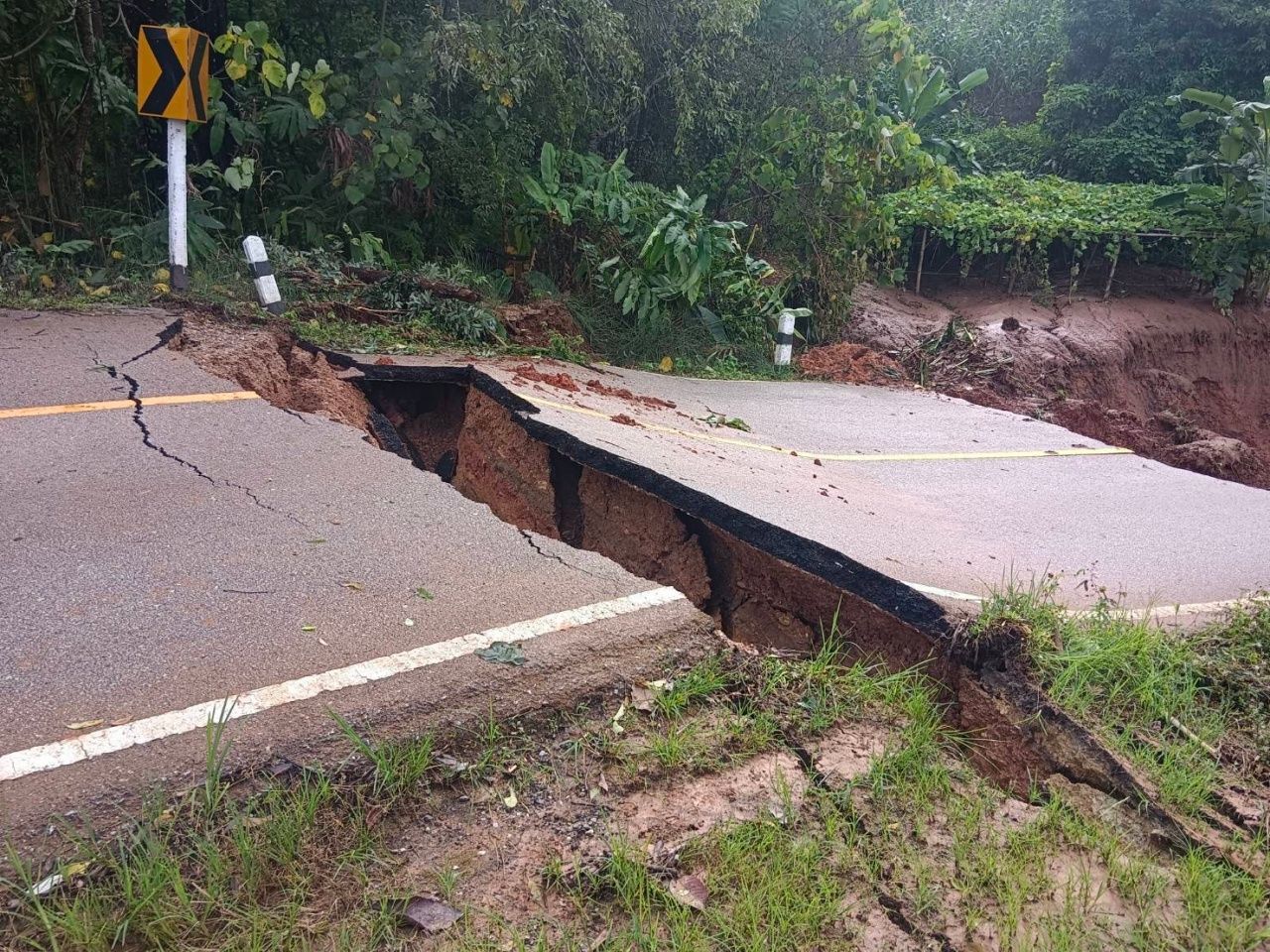 ขณะที่บนดอยภูชี้ฟ้าถูกน้ำเซาะดินสไลด์ทำถนนพังเสียหาย แขวงทางหลวงต้องปิดถนนห้ามใช้เส้นทางแล้ว เช่นเดียวกับ อ.เวียงป่าเป้า ถนนหมายเลข 118 ถูกน้ำท่วม รถเล็กต้องสัญจรด้วยความระมัดระวัง.