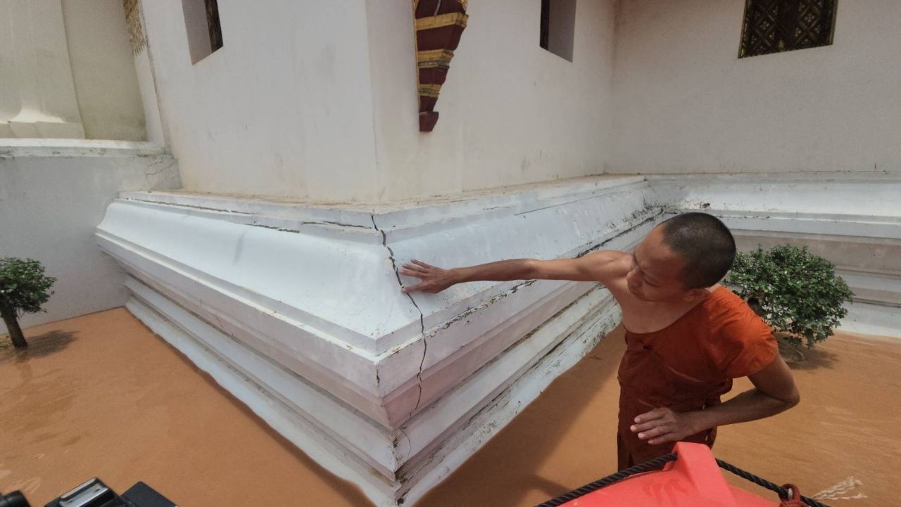 พระมหาสุดสาคร พระเลขาฯ ผู้รักษาการแทนเจ้าอาวาสวัด เปิดเผยว่า หลังน้ำท่วมขังต่อเนื่อง 2-3 วัน เพิ่งมีโอกาสเข้าสำรวจวันนี้ พบว่าฐานพระอุโบสถแตกร้าวหลายจุด รวมถึงผนังภายในมีรอยร้าวและเริ่มบวม หวั่นเกิดการทรุดตัวในระยะต่อไป