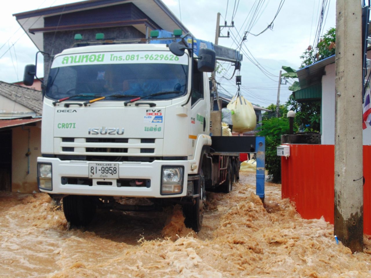 ด้านนายมนู พุกประเสริฐ นายก อบจ.สุโขทัย ระดมเจ้าหน้าที่ นำบิ๊กแบ็กวางปิดบริเวณหน้าบ้านหลังดังกล่าว เพื่อปิดเส้นทางน้ำมิให้ไหลทะลักเพิ่มเป็นวงกว้าง