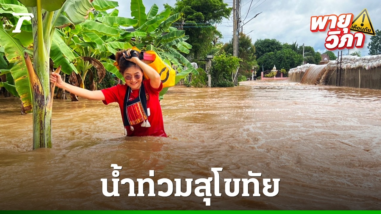เมื่อเวลา 10.00 น. วันนี้ (27 ก.ค. 68) ผู้สื่อข่าวรายงานว่า น้ำยมที่ไหลผ่านตัวเมืองสุโขทัย ได้กระแทกแนวพนังกั้นน้ำคอนกรีต ความสูงเกือบ 2 เมตร หลังบ้านของนางประนอม เกี๋ยวคำ อายุ 73 ปี ชาวบ้านชุมชนคูหาสุวรรณ ต.ธานี อ.เมืองสุโขทัย จนแตก ส่งผลให้มวลน้ำจำนวนมหาศาลไหลทะลักเข้าท่วมภายในชุมชนอย่างรวดเร็ว ระดับน้ำสูงเกือบ 1 เมตร ชาวบ้านต่างขนของหนีน้ำกันจ้าละหวั่น