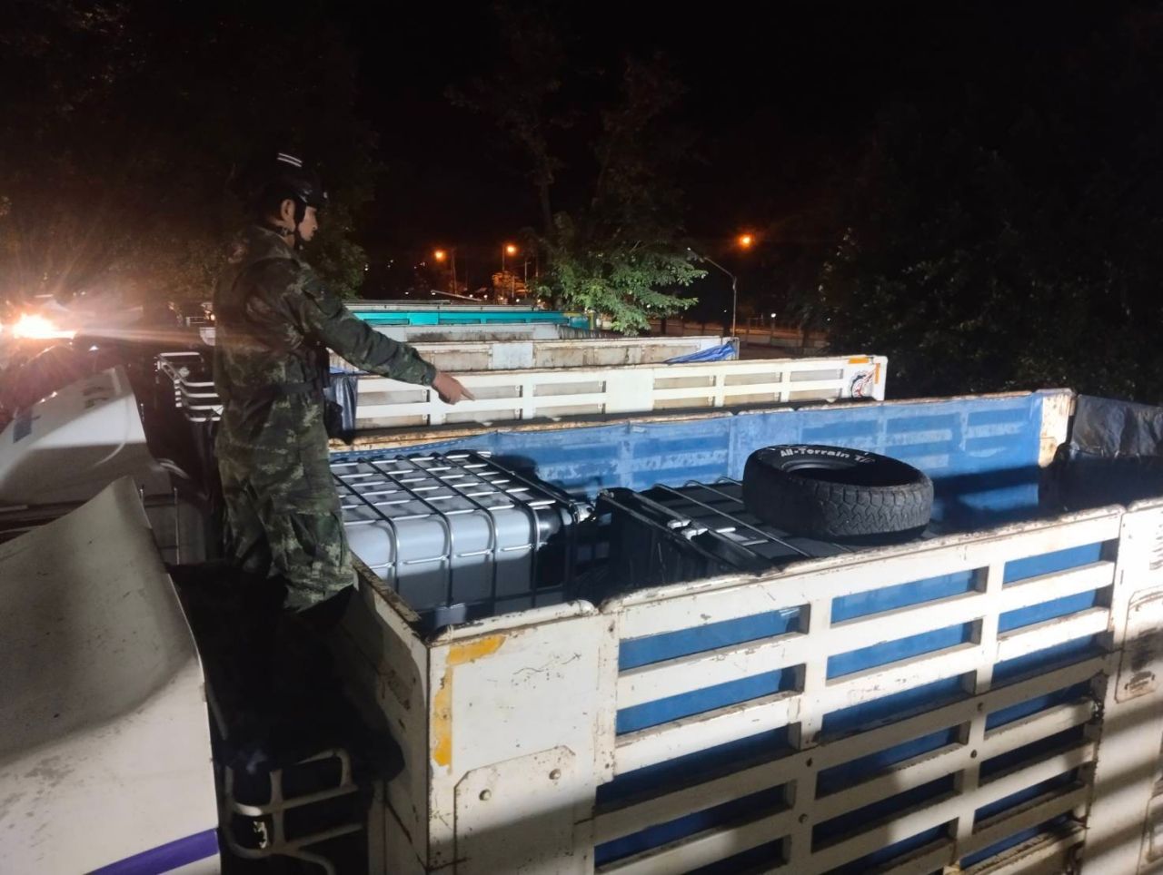 ชายแดนเมียนมาขาดแคลนน้ำมัน ขบวนรถสิบล้อเตรียมลักลอบขนข้ามแดนจนถูกจับกุมน้ำมันดีเซล 60,000 ลิตร พร้อมรถบรรทุก 6 คัน