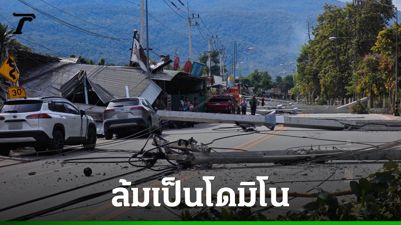 ล่าสุดเพจเฟซบุ๊ก "แขวงทางหลวงเชียงใหม่ที่สอง กรมทางหลวง" ได้โพสต์ อัปเดตสถานการณ์ เวลา 16.25 น. เบื้องต้นมี เสาไฟฟ้าแรงสูงล้มขวางถนน 24 ต้น และเสาไฟแสงสว่างกิ่งเดี่ยวของทางหลวงเสียหาย 25 ต้น