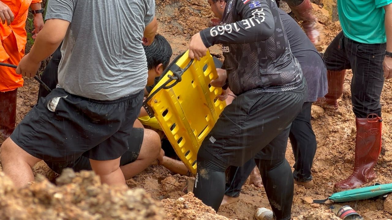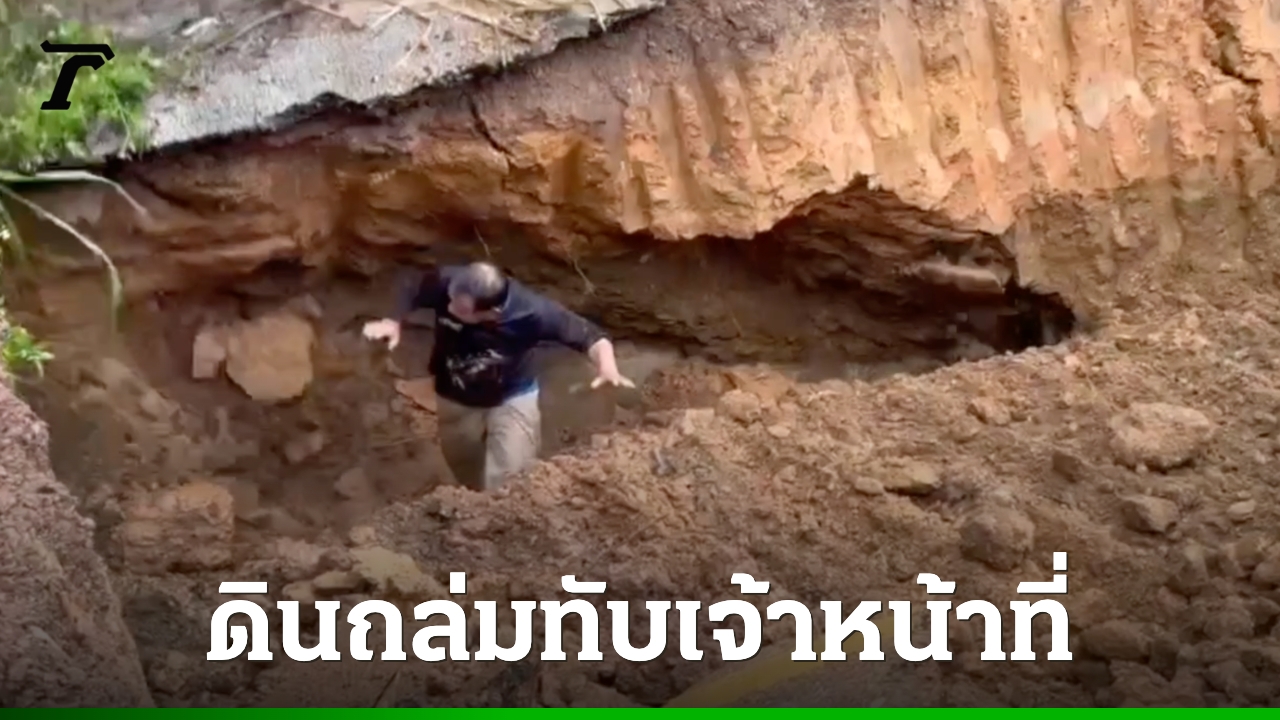 นาทีชีวิต ถนนถล่มทับร่างเจ้าหน้าที่เทศบาลฯ ขณะตรวจสอบการขุดท่อระบายน้ำใต้ถนน ที่แม่ริม เชียงใหม่ เร่งนำส่งโรงพยาบาล