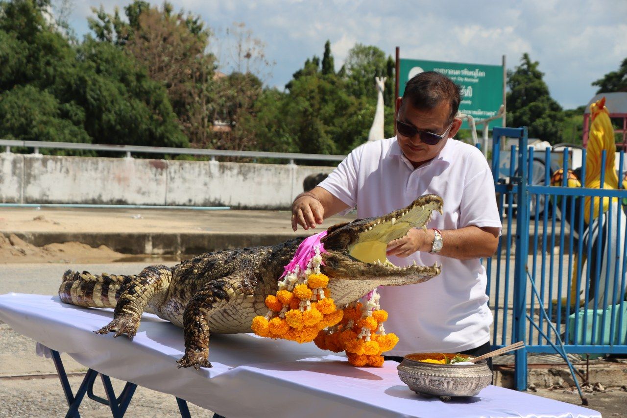 วันที่ 10 ต.ค. 68 นายคณาธิป นาทิพย์ หรือ สท.แดง พันปี พร้อมครอบครัวได้เดินทางไปรับร่างไอ้ทอง จระเข้แสนรู้ ที่เลี้ยงไว้ในบ้านพักเหมือนสัตว์เลี้ยงมากว่า 15 ปี ซึ่งเสียชีวิตเมื่อ 13 ส.ค.68 ที่ผ่านมา หลังจากนำไปสตาฟที่ศูนย์วิจัยประมงน้ำจืดจังหวัดนครสวรรค์ กลับมาที่บ้าน โดยเก็บไว้บนห้องพระชั้น 2 ของบ้าน จุดที่ไอ้ทองชอบขึ้นมาไหว้พระ โดยพรุ่งนี้จะมีการจัดพิธีทำบุญเลี้ยงเพลพระ และจัดพิธีเบิกเนตรให้ไอ้ทอง