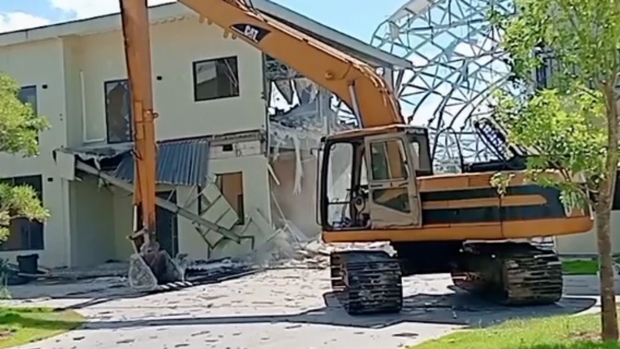 เปิดภาพอาคารสำนักงานสแกมเมอร์ใน "เคเคปาร์ค" ฝั่งเมียนมาร์ หลังถูกฝ่ายบีจีเอฟระเบิดทำลาย ใช้แบ็กโฮรื้อทิ้งอย่างต่อเนื่อง