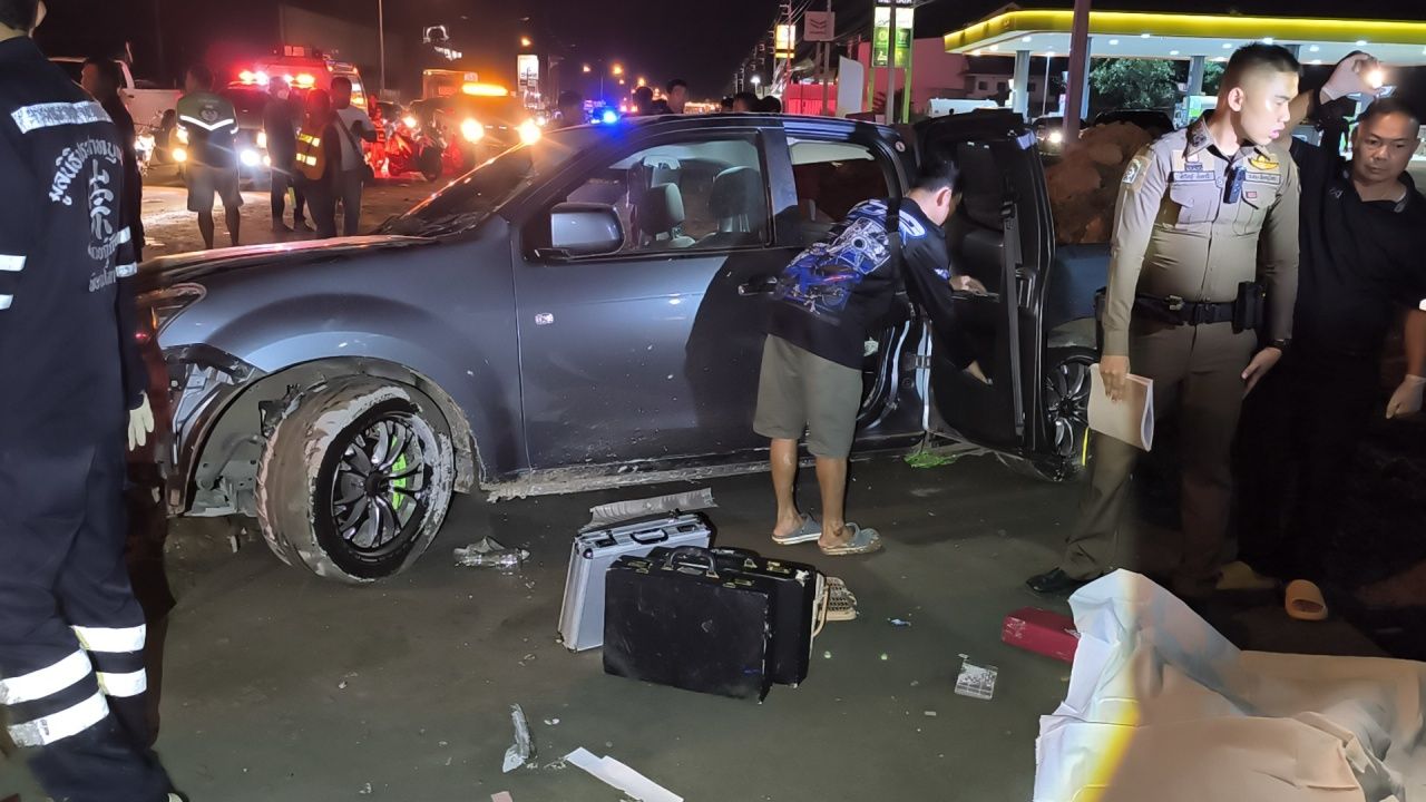 นอกจากนี้ ยังพบรถยนต์กระบะนิสสัน รุ่นนาวาร่า ทะเบียนพิษณุโลก ซึ่งเป็นรถคนงานกระบะท้ายพังยับ บริเวณกลางถนนพบรถจักรยานยนต์ฮอนด้า สีเขียวอ่อน ทะเบียนพิษณุโลก มีผู้รับบาดเจ็บเป็นชาย 1 ราย อาการสาหัสเร่งนำตัวส่งโรงพยาบาล และห่างออกไปประมาณ 100 เมตร พบรถยนต์กระบะยี่ห้ออีซูซุ ดีแมกซ์สีเทาดำ 4 ประตู ทะเบียนกรุงเทพมหานคร มีร่องรอยถูกเฉี่ยวชน ส่วนคนขับเป็นชาย 1 ราย หลบหนี ก่อนเจ้าหน้าที่ตำรวจสามารถติดตามรวบตัวได้ในเวลาต่อมา และนำตัวไปสอบปากคำที่ สภ.เมืองพิษณุโลก เบื้องต้นได้ให้การอ้างว่าแข่งกันมากับรถกระบะอีกคัน ก่อนเฉี่ยวชนกัน จนมีผู้เสียชีวิต 4 ราย และผู้ได้รับบาดเจ็บ 7 ราย
