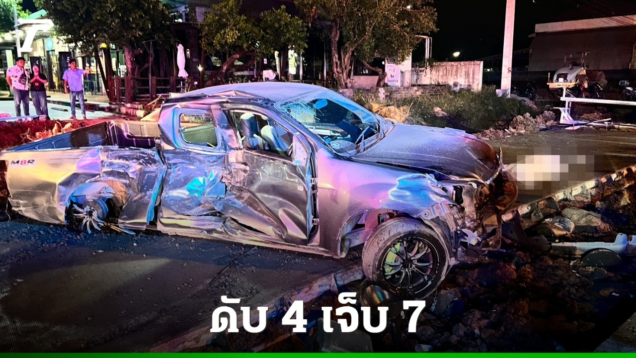 กระบะขับแข่งกันมา ก่อนเสียหลักชน จยย. จากนั้นพุ่งชนรถพนักงานทำถนน ดับ 4 เจ็บ 7 บนถนนมิตรภาพ ที่พิษณุโลก ตำรวจสอบปากคำคนขับ ก่อนดำเนินคดีตามกฎหมาย