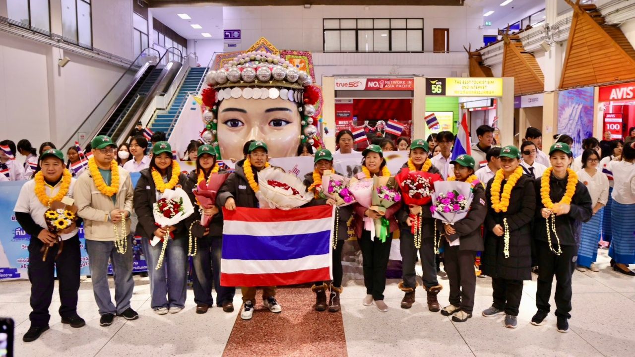 บรรยากาศอบอุ่น ต้อนรับเด็กไทยกลับบ้าน ทีมนักศึกษาวิทยาลัยอาชีวศึกษาเชียงราย "Fighting Frost TH" หลังคว้าแชมป์ แข่งขันแกะสลักหิมะนานาชาติ ICSSC 2026 ที่เมืองฮาร์บิน