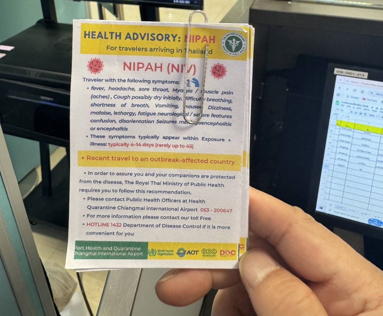 วันที่ 24 มกราคม 2569 นายการันต์ ธนกุลจิรพัฒน์ ผู้อำนวยการท่าอากาศยานเชียงใหม่ เปิดเผยว่า จากสถานการณ์การระบาดของไวรัสนิปาห์ ที่กำลังเกิดขึ้นในประเทศอินเดียนั้น ท่าอากาศยานเชียงใหม่ได้ประสานความร่วมมือกับด่านควบคุมโรคติดต่อระหว่างประเทศ ดำเนินมาตรการเชิงรุกในรูปแบบเดียวกับการเฝ้าระวังโรค COVID-19 และ MERS