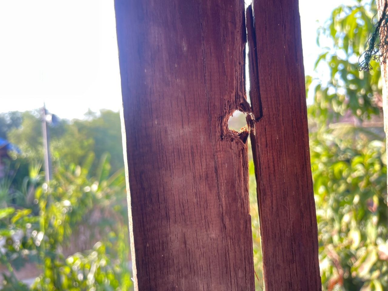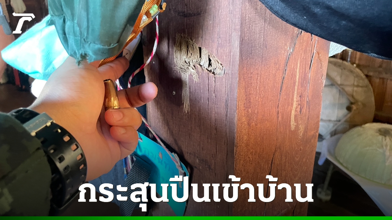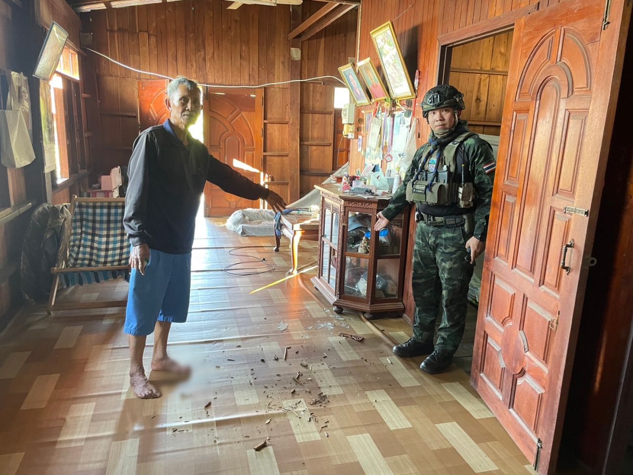 จนกระทั่งมีลูกหลงเลยข้ามประเทศไทยมาที่บ้านของ นายน้อง แก้วมา อายุ 70 ปี ในพื้นที่หมู่ที่ 9 ต.มหาวัน ถูกกระสุนปืนยิงใส่ฝาผนังบ้านทะลุเป็นรูแฉลบมาใส่เสาบ้านตกข้างที่นอนและอีก 1 ลูกถูกใส่กระจกตู้โชว์ โชคดีที่ไม่ได้รับบาดเจ็บ