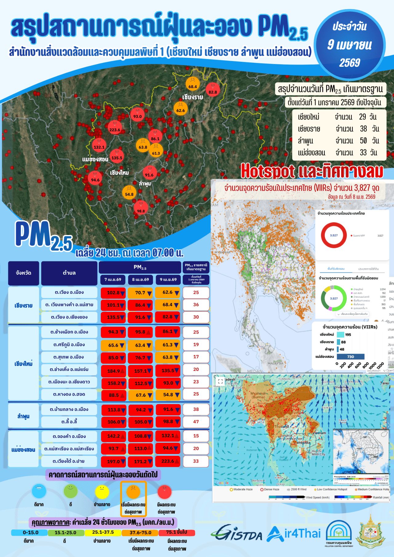 วันที่ 9 เมษายน 2569 ผู้สื่อข่าวรายงานสถานการณ์ไฟป่าและหมอกควันของจังหวัดเชียงใหม่และภาคเหนือ ซึ่งก่อนหน้านี้มีท่าทีว่าจะคลี่คลาย หลังจากที่ทุกภาคส่วนระดมกำลังอย่างหนักเพื่อมาช่วยแก้ไขปัญหา จนทำให้สถานการณ์ไฟป่าของเชียงใหม่และ 17 จังหวัดภาคเหนือเริ่มลดลง แต่ล่าสุดตั้งแต่ช่วงบ่ายวานนี้กลับพบว่าสถานการณ์ไฟป่ากลับมาทวีความรุนแรงขึ้นอีกครั้ง