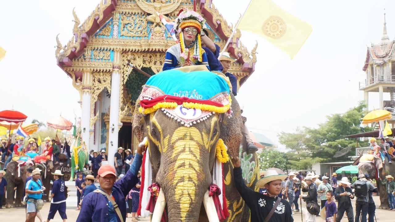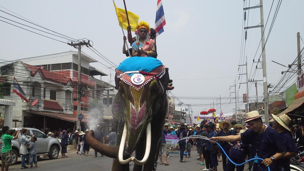 นักท่องเที่ยวนับพันแน่นอ.ศรีสัชนาลัย จ.สุโขทัย แห่ร่วมงานประเพณีแห่ช้างบวชนาคไทพวน เป็นปีที่ 173 ขณะที่บางส่วนได้เริ่มต้นเทศกาลสงกรานต์เต็มรูปแบบ