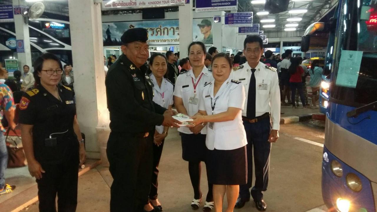 ต่อมา ได้เดินทางไปที่สถานีขนส่งแห่งที่ 2 มีเจ้าหน้าที่ขนส่ง ปปส. ตำรวจ สภ.เมือง และตำรวจท่องเที่ยว ร่วมกันตรวจสภาพความความพร้อมของรถทัวร์และทดสอบตรวจวัดระดับแอลกอฮอล์พนักงานขับรถทุกคน โดยมีผู้โดยสารทั้งชาวไทยและต่างประเทศเตรียมตัวเดินทางไปกรุงเทพฯ จำนวนมาก แน่นสถานี เจ้าหน้าที่ขนส่งต้องเพิ่มเที่ยวรถจากเดิมวันละ 60 เที่ยว เป็น 72 เที่ยว นอกจากนั้น ได้เตรียมสำรองรถทัวร์ในพื้นที่อีก 2 คัน เพื่อไม่ให้มีผู้โดยสารตกค้าง