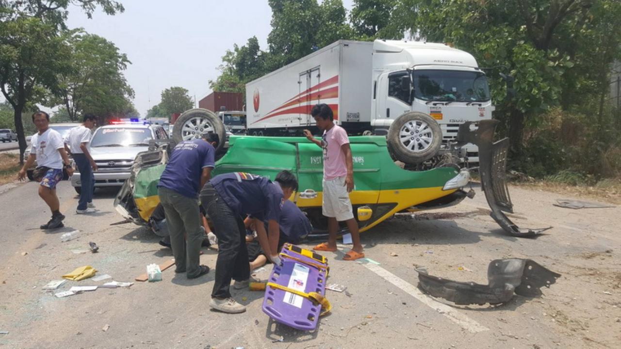 หนุ่มแท็กซี่บึ่งจากกรุงไปรับนักท่องเที่ยวเดนมาร์กกับเพื่อนสาวถึง จ.ตาก เพื่อจะไปพัทยา วิ่งมาถึงกำแพงเพชร เกิดหลับในตื่นขึ้นมาเห็นรถแล่นอยู่กระชั้นชิดกับคันหน้า จึงหักหลบเสียหลักพลิกคว่ำ ฝรั่งดับ ส่วนคนขับและเพื่อนหญิงสาหัส...