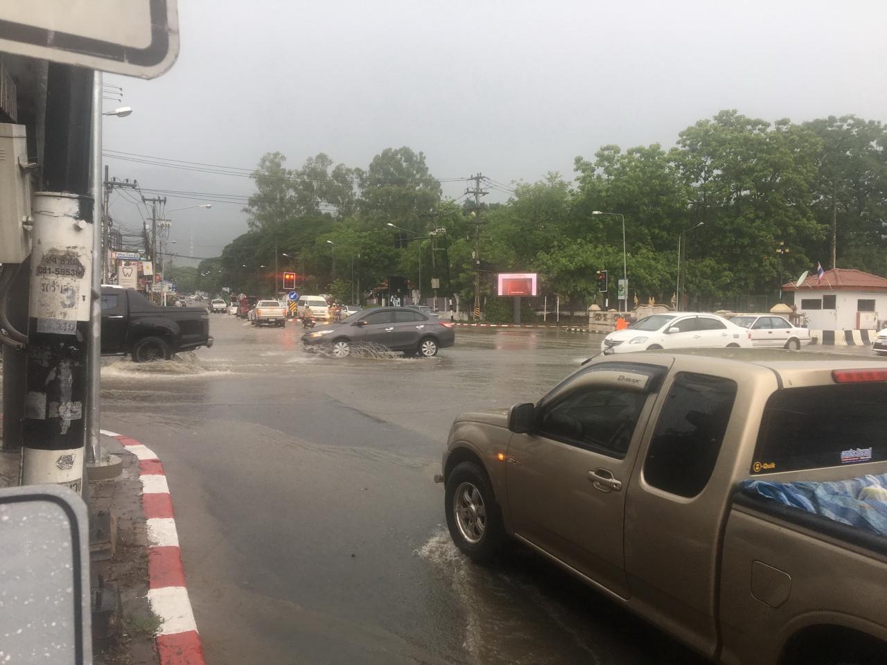 เมื่อวันที่ 24 พ.ค. 60 ช่วงเช้าที่ผ่านมาเกิดฝนตกลงมาอย่างหนักในพื้นที่ จ.เชียงใหม่ ส่งผลทำให้น้ำป่าไหลลงมาจากดอยสุเทพ เข้าท่วมพื้นผิวจราจร 4 แยกตลาดต้นพยอม ถนนคันคลองชลประทานตัดกับถนนสุเทพ ด้านหลังมหาวิทยาลัยเชียงใหม่ ทางเจ้าหน้าที่เทศบาลตำบลสุเทพ ต้องมาช่วยกันเคลียร์เศษไม้ที่มาอุดตามฝ่าท่อระบายน้ำออกอย่างเร่งด่วน เพื่อให้น้ำป่าไม่ท่วมขังผิวการจราจร ไหลลงสู่คันคลองชลประทาน