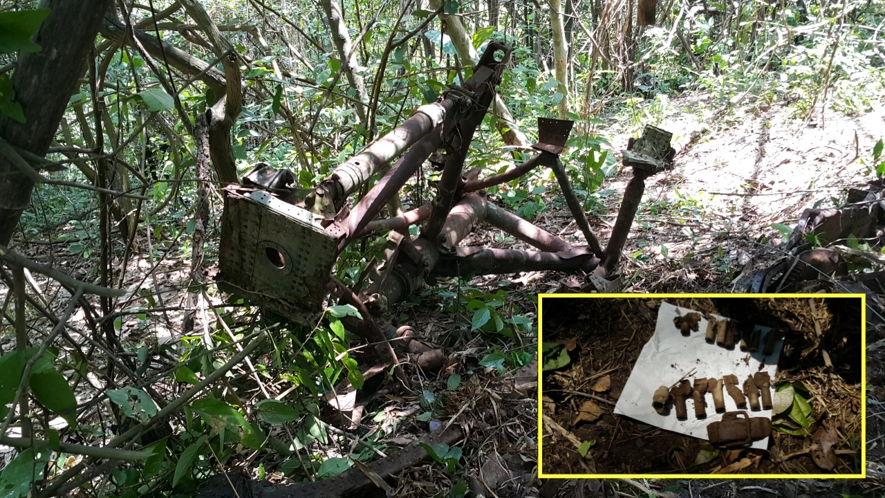 ทั้งนี้ หลังจากเจ้าหน้าที่ลงพื้นที่จุดเครื่องบินตก พบเศษซากชิ้นส่วนกระจายอยู่ 2 จุด คือ บนสันเขา พิกัดแผนที่ 15.077341, 99.284227 ซึ่งจุดนี้พบเศษซากโลหะเป็นจำนวนมาก รวมทั้งซากปลอกกระสุนปืน ซึ่งเกิดระเบิดเนื่องจากถูกไฟเผาในช่วงที่เครื่องบินกระแทกกับพื้น ส่วนจุดที่ 2 อยู่บริเวณลำห้วยด้านล่าง พิกัดแผนที่ 15.076429 ,99.282966 ซึ่งเป็นจุดที่พบซากเครื่องบินอีกจุดหนึ่ง ทั้ง 2 จุดห่างกัน 257 เมตร เจ้าหน้าที่จึงได้ถ่ายรูปไว้เป็นหลักฐานเพื่อรายงานผู้บังคับบัญชาต่อไป แต่ยังไม่สามารถระบุได้ว่าเป็นเครื่องบินชนิดใดรุ่นใด.