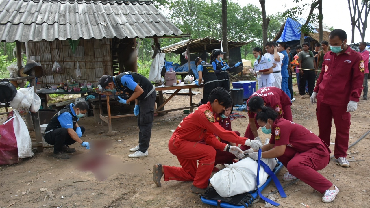 ที่เกิดเหตุเป็นสวนยางพาราพื้นที่กว่า 300 ไร่ บริเวณหน้ากระท่อมที่ปลูกสร้างด้วยไม้ไผ่และเศษไม้ มีศพผู้เสียชีวิตเป็นหญิง 1 ราย นอนหงายจมกองเลือด ทราบชื่อคือ นางสำเภา ศรีบุญมี อายุ 40 ปี อยู่บ้านเลขที่ 111 หมู่ 10 ต.ไผ่ใหญ่ ต.วังนกแอ่น อ.วังทอง สภาพสวมเสื้อยืดสีดำ นุ่งกางเกงขายาวสีแดง มีบาดแผลถูกยิงด้วยอาวุธปืนลูกซองเบอร์ 12 ที่หน้าอกเหนือหัวใจเป็นรูขนาดกว้างประมาณ 1.5 นิ้ว 1 แห่ง ปากแผลมีแหวนกระดาษลูกปืนลูกซองคาดอยู่ 2 ชิ้น และพบเหล็กกรีดยางอยู่ในกระเป๋ากางเกง 8 อัน