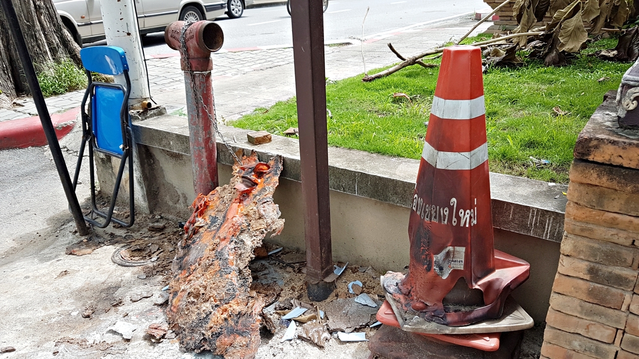 เมื่อวันที่ 14 มิ.ย. 60 สื่อสังคมออนไลน์ในจังหวัดเชียงใหม่ มีการแชร์ภาพกรวยยางสีส้มของตำรวจกลุ่มงานจราจร สภ.เมืองเชียงใหม่ ที่ล่ามโซ่เก็บไว้ ข้างถนนในซอยข้างวัดโลกโมฬี ต.ช้างเผือก เสียหายจำนวนหลายอัน พร้อมกับมีไฟแช็กตกอยู่ในที่เกิดเหตุอีกด้วย กลายเป็นกระแสวิพากษ์วิจารณ์ของชาวเน็ตว่า กลุ่มวัยรุ่นอาจไม่พอใจตำรวจจราจรที่มาตั้งด่านตรวจจับแถวนั้นบ่อยๆ
