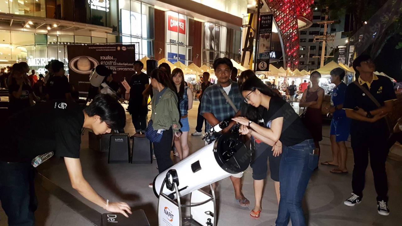 เมื่อช่วงหัวค่ำวันที่ 15 มิ.ย. บริเวณลานน้ำพุ หน้าศูนย์การค้าเมญ่า ไลฟ์สไตล์ ช้อปปิ้งเซ็นเตอร์ ถนนห้วยแก้ว อ.เมือง จ.เชียงใหม่ สถาบันวิจัยดาราศาสตร์แห่งชาติ (สดร.) ได้จัดกิจกรรมสังเกตการณ์ "ดาวเสาร์ใกล้โลกที่สุดในรอบปี” พร้อมนำกล้องดูดาวมาบริการให้ประชาชนผู้สนใจร่วมส่อง “วงแหวนดาวเสาร์” ที่สว่างสุด ชัดสุดในรอบปี พร้อมกับ “ดวงจันทร์ไททัน”ดวงจันทร์บริวารของดาวเสาร์ นอกจากนี้ ยังสามารถสังเกตดาวพฤหัสบดีพร้อมดวงจันทร์บริวารอีก 4 ดวง มีคนสนใจพากันต่อแถวเข้าคิวส่องดูเป็นจำนวนมาก
