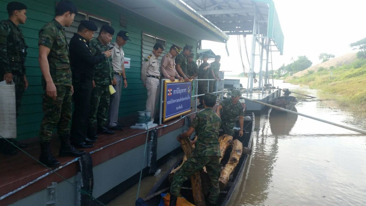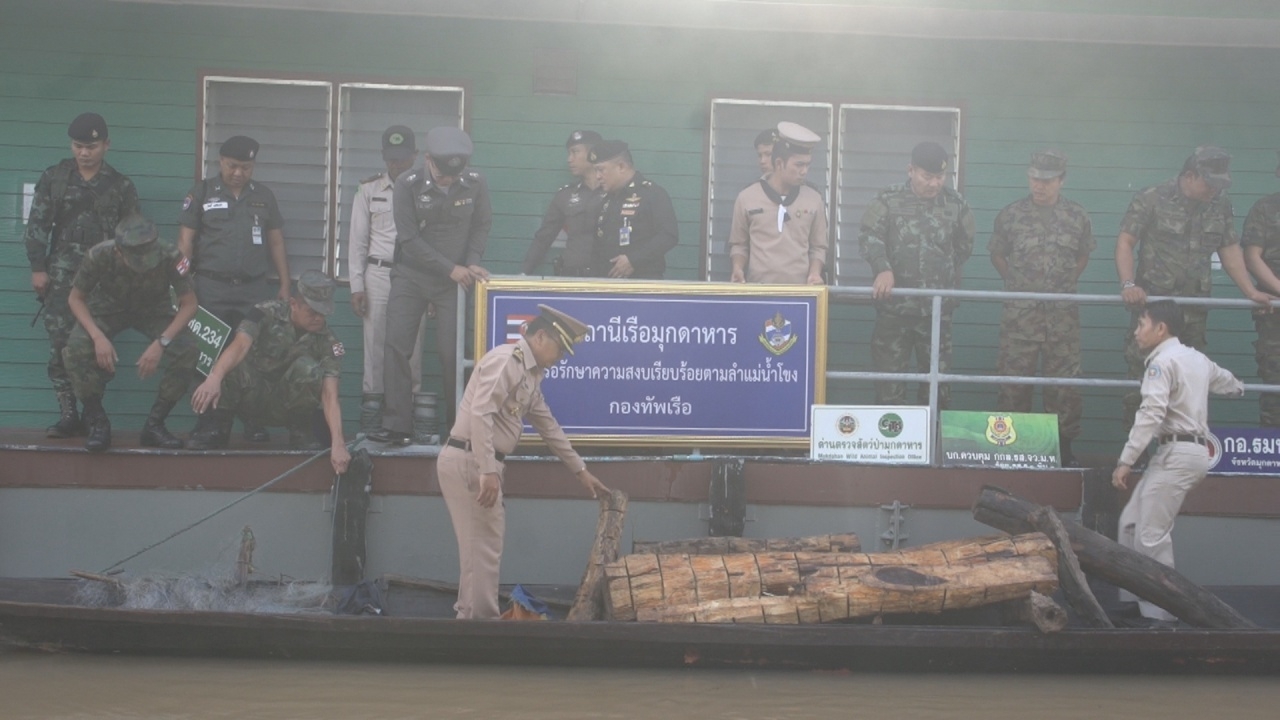 เวลา 08.00 น. วันที่ 18 ก.ค. น.ท.อมรศักดิ์ ชนะศึก หน.สน.เรือมุกดาหาร (นรข.มุกดาหาร) สืบทราบว่าจะมีการลักลอบขนส่งไม้พะยูงไปยังฝั่งประเทศเพื่อนบ้าน ที่บริเวณกลางแม่น้ำโขง ปากลำห้วยแข้ บ้านคำภูเงิน ต.นาสีนวน อ.เมืองมุกดาหาร จึงประสานหน่วยงานข้างเคียงไปตรวจสอบ พบชาย 1 คนชื่อ ท้าวแหล่ ไม่มีนามสกุล อายุ 36 ปี ชาวลาวแขวงสะหวันนะเขต พร้อมเรือหางยาวติดเครื่องยนต์ 1 ลำ ลักลอบขนไม้พะยูงขนาดใหญ่ ความยาว 2 เมตร จำนวน 9 ท่อน มูลค่าประมาณ 5 แสนบาท