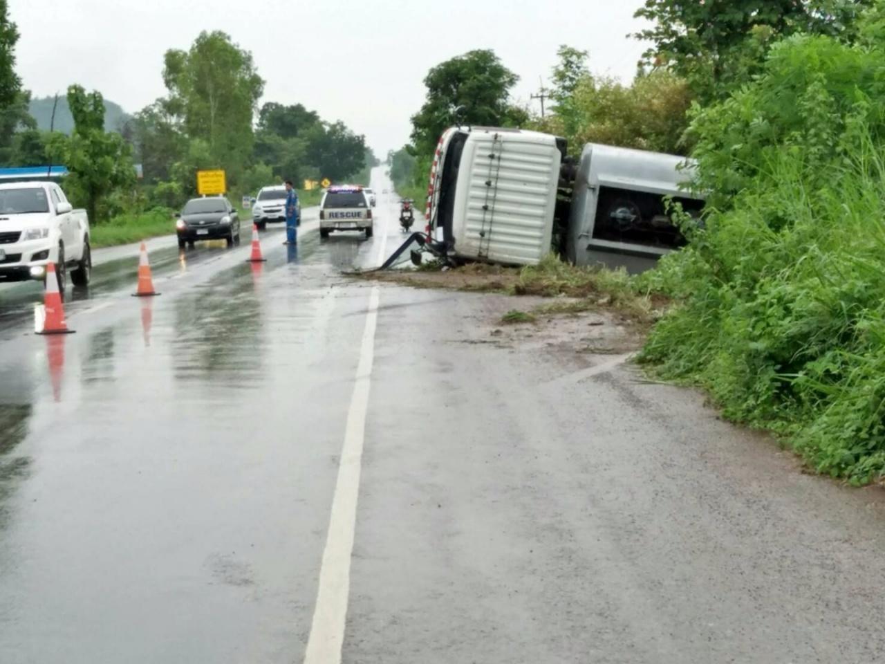 ในที่เกิดเหตุพบรถบรรทุกน้ำมันยี่ห้อฮีโน่ สีขาว หมายเลขทะเบียน 81-8641 กาฬสินธุ์ สภาพพลิกคว่ำตกลงข้างทางโดยส่วนหัวของตัวรถยื่นออกมาข้างทาง และพบว่าบริเวณฝาปิดน้ำมัน มีน้ำมันไหลออกมาตลอดเวลา โดยบรรจุน้ำมันมาประมาณ 12,000 ลิตร ทางเจ้าหน้าที่จึงหาถังมารองน้ำมันไว้ และได้ทำการปิดช่องทางการจราจร 1 ช่องทางเพื่อป้องกันอันตราย โดยมีรถดับเพลิงจากเทศบาลบาลตำบลโนนบุรีมาเตรียมพร้อมในที่เกิดเหตุ ทราบชื่อคนขับคือ นายไชยยัญ มณีศรี อายุ 27 ปี ได้รับบาดเจ็บเพียงเล็กน้อย