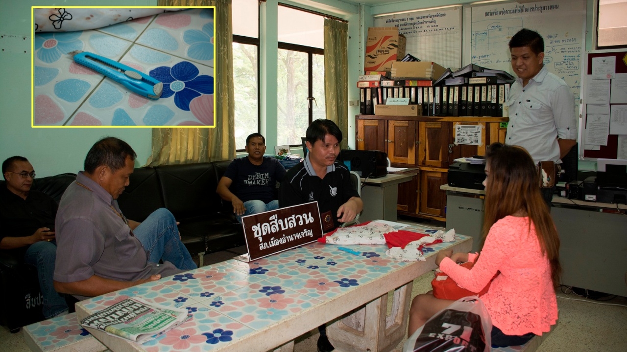 จากการสอบสวน ผู้ต้องหาให้การว่า ในคืนเกิดเหตุ ตนเองและผู้ที่ได้รับบาดเจ็บได้ไปเที่ยวที่ผับดังกล่าว จนกระทั่งใกล้เวลาปิดผับ ได้มีกลุ่มสาวประเภทสอง ที่นั่งอยู่โต๊ะตรงข้ามกันโยนขวดแก้วมาที่โต๊ะของตน ตนจึงได้เดินเข้าไปถามว่าได้โยนขวดมาที่โต๊ะของตนหรือไม่ จากนั้นก็มีหญิงสาวคนหนึ่งที่อยู่ในกลุ่มดังกล่าวก็บอกว่า "ไม่ได้โยน จะหาเรื่องกันเหรอ" พอพูดจบก็จึงมีการตบตีกันในผับ จนพนักงานได้มาห้าม จากนั้นจึงออกมาข้างนอก พอออกมาจากในผับก็มีสาวประเภทสองในกลุ่มดังกล่าวเดินเข้ามาตบตี ตนสู้แรงไม่ได้ จึงได้หยิบเอามีดคัตเตอร์ที่ซ่อนไว้กับตัวออกมา หวังจะฟันไปที่สาวประเภทสอง แต่ผู้ได้รับบาดเจ็บซึ่งเป็นเพื่อนของตน เกิดวิ่งเข้ามาห้ามพอดี จึงทำให้มีดคัตเตอร์ไปโดนเพื่อนแทน หลังจากนั้นเพื่อนผู้ชายในกลุ่มของตนได้รีบนำเพื่อนที่ได้รับบาดเจ็บไปส่งที่โรงพยาบาลก่อน ส่วนตนก็ยังพัวพันตบตีกับกลุ่มดังกล่าวอยู่ จึงไม่ได้ตามไปดู