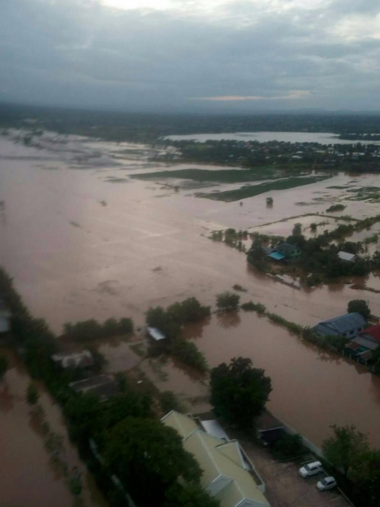 ภาพถ่ายทางอากาศบริเวณที่น้ำท่วม อ.บำเหน็จณรงค์
