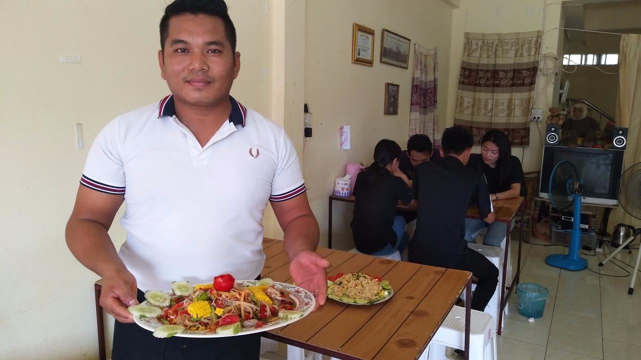 นายบุญส่ง ดีหล้า อายุ 33 ปี เจ้าของร้านน้องเอตำแหลก กล่าวว่า ตนเปิดร้านมาเกือบ 2 ปีแล้ว ที่ร้านขายอาหารอีสาน เมนูเด็ดของที่ร้านที่ทุกคนเข้ามาจะต้องสั่งคือ 'ตำโคตรมั่วท้านรก' โดยตนจะนำอาหารเครื่องปรุงหลายชนิดตำรวมกัน เช่น เส้นมะละกอสด ขนมจีน หอยแครง หอยเชอรี่ ปูม้า ปลาหมึก ปูอัด กุ้งสด หมูยอ ข้าวโพด หน่อไม้ ผักลวกและอื่นๆ ตำรวมกันให้เข้ากัน ใส่พริกขี้หนูสดๆ ตำละเอียด คลุกเคล้าเครื่องปรุง