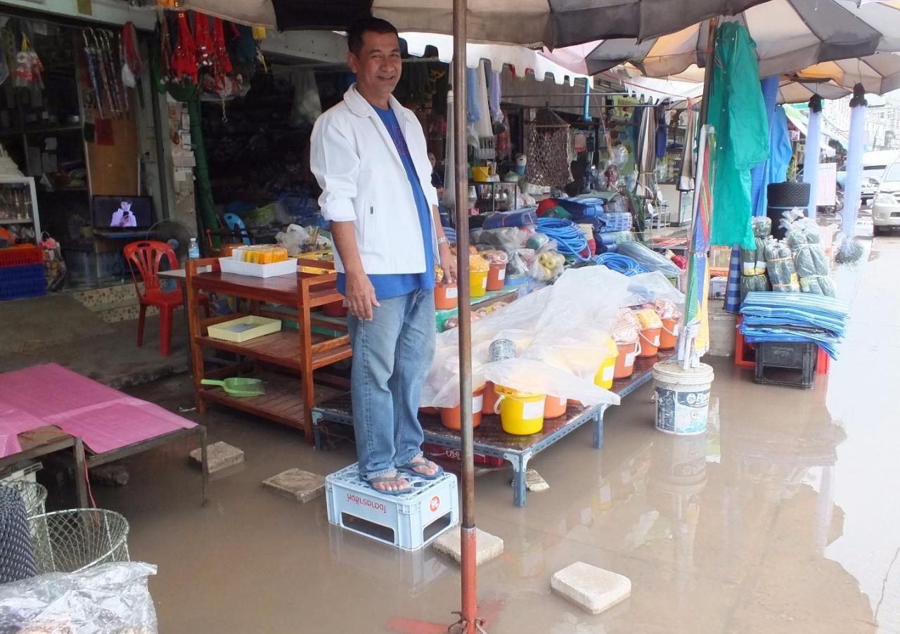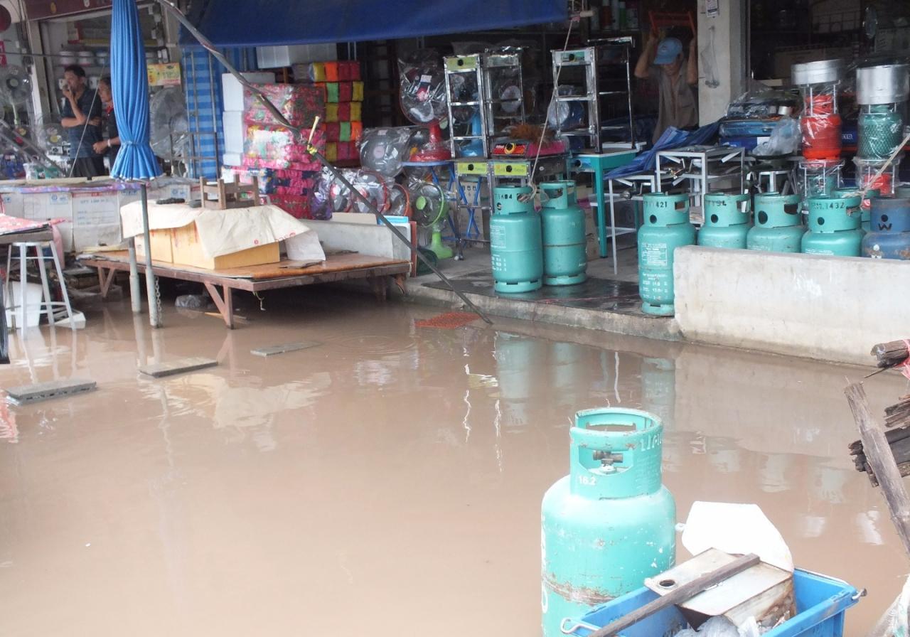 จากการสอบถาม นายสุริยันต์ วาดพิมาย อายุ 56 ปี บ้านเลขที่ 55/3 ม.14 ต.ในเมือง อ.พิมาย จ.นครราชสีมา พ่อค้าขายของอยู่ในตลาดพิมายเมืองใหม่ เล่าว่าถ้ามีฝนตกลงมาติดต่อกันนานๆ น้ำก็จะเอ่อเข้าท่วมขังทุกครั้งสาเหตุมาจากท่อระบายน้ำในตลาดพิมายเมืองใหม่ เป็นท่อขนาดเล็กน้ำระบายออกไม่ทัน พ่อค้าแม่ค้าในตลาดพิมายเมืองใหม่ ได้รับความลำบากขายของก็ไม่ได้ เพราะว่าลูกค้าไม่เข้ามาซื้อของ.