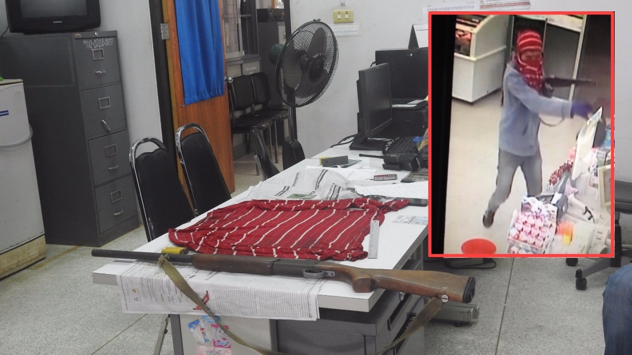 หนุ่มวัย 27 ปี ขับรถกระบะของตา บุกเดี่ยวใช้ปืนลูกซองแฝด จี้ชิงเงินร้านเซเว่นฯ หน้าค่ายทหารพราน ที่ปักธงชัย โคราช ได้ไป 3 พัน ก่อนซิ่งแหกด่านหนีไปตกคลอง วิ่งเข้าป่า ตำรวจระดมกำลังล้อมจับนานหลายชั่วโมง ก่อนจนมุมคุมตัวไปสอบเครียด...