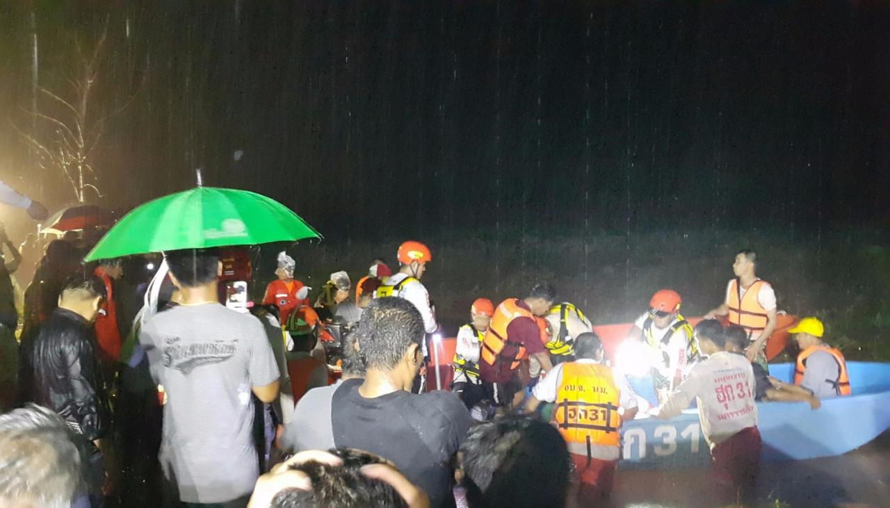 ต่อมาเวลา 21.00 น. นายสนอง มะลัยขวัญ นอภ.เทพารักษ์ ได้ประสานขอความช่วยเหลือไปยังป้องกันและบรรเทาสาธารณภัยภัยจังหวัดนครราชสีมา และ ร.ต.ชูวิทย์ พันเนตร หน. ชุดร้อย.รส.พันพัฒนาที่ 2 รับผิดชอบเขต อ.เทพารักษ์ ได้ประสานกับหน่วยเหนือ นำเรือลากจูงเชือก 3 เส้น อีก 2 ลำ เข้าไปช่วยเหลืออีกทาง แต่ยังไม่สามารถเข้าไปช่วยเหลือได้ เนื่องจากน้ำยังคงไหลเชี่ยวแรงต่อเนื่อง และมีเรือของทีมกู้ภัยฮุก 31 ล่มกลางน้ำ 1 ลำ ยังไม่สามารถกู้ขึ้นได้ และเรืออีกลำก็ยังติดด้านในกับชาวบ้านอีกด้วย ล่าสุดเวลา 23.00 น. ได้มีน้ำไหลมาเพิ่มขึ้นอีก จึงยุติการช่วยเหลือไว้ก่อน รอให้ฟ้าสว่างในวันรุ่งขึ้น จึงจะเข้าไปช่วยเหลือต่อได้.