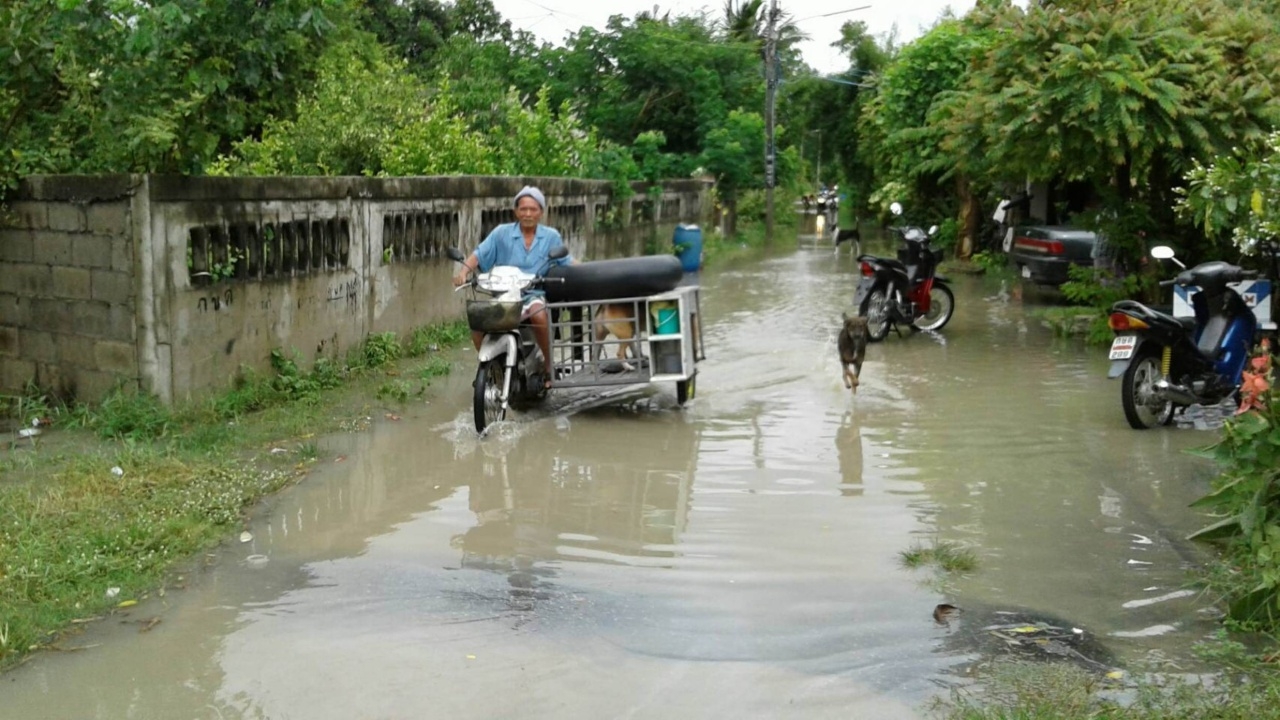 ทั้งนี้ ฝนที่ตกลงมาหนักยังส่งผลให้น้ำเอ่อท่วมบ้านเรือนประชาชน และร้านค้าที่อาศัยอยู่ 2 ฝั่งถนน จนหลายร้านต้องเก็บข้าวของ และปิดร้านก่อนกำหนด อีกทั้งน้ำยังได้หลากเข้าท่วมถนนทางเข้าหมู่บ้าน บ้านน้อยหนองอ้อ น้ำท่วมเข้าบ้านเกือบจะทุกหลังคาเรือน ส่วนถนนภายในหมู่บ้านท่วมมาก เป็นระยะทางยาวกว่า 100 เมตร ทั้งยังท่วมโรงเรียนพุทไธสง บ้าพักครู น้ำท่วมสูง 20-30 เซนติเมตร เทศบาลได้นำเครื่องสูบน้ำ ขนาด 6 นิ้ว 1 เครื่อง ไปติดตั้งหน้าวัดหงษ์ เพื่อเร่งสูบน้ำระบายออกจากโรงเรียนพุทไธสง ลงสู่บึงมะเขือ เป็นการเร่งด่วนแล้ว ฝนก็ยังตกหนักอย่างต่อเนื่อง.