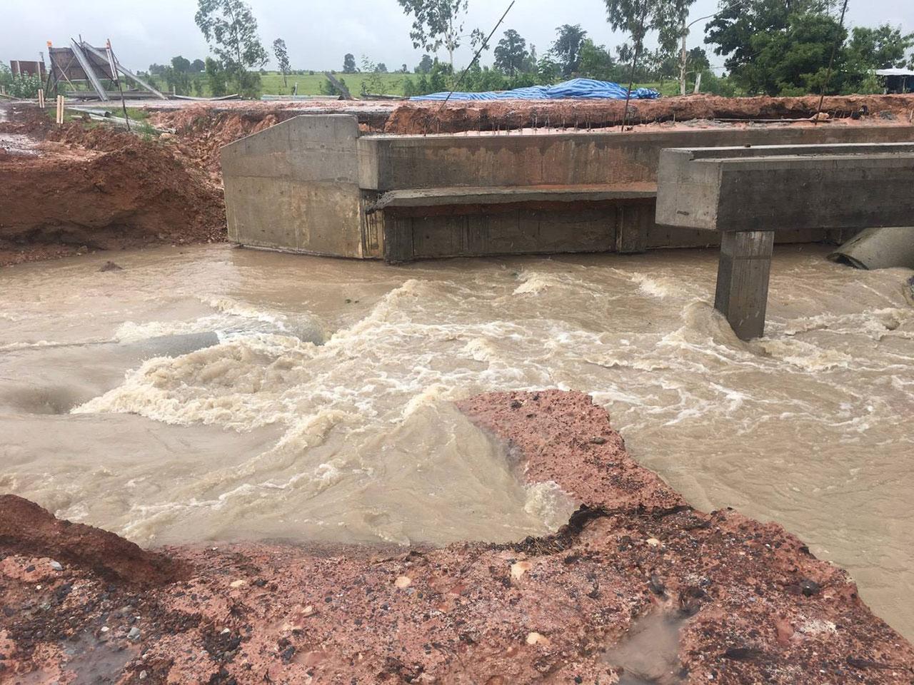 เนื่องจากเมื่อคืนที่ผ่านมา มีฝนตกลงมาอย่างหนัก ทำให้น้ำกัดเซาะถนนขาด รถไม่สามารถสัญจรไปมาได้