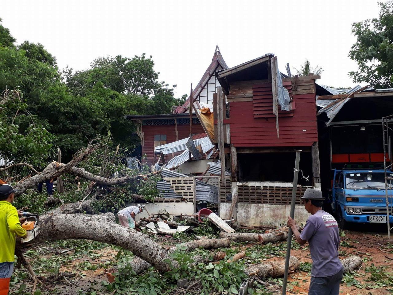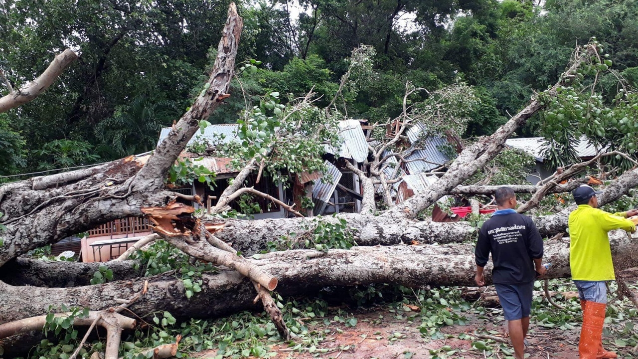 ฝนกระหน่ำทั้งคืน ทำต้นโพธิ์อายุกว่า 100 ปี โค่นใส่กุฏิและโรงครัววัดท่าเรียบ จ.บุรีรัมย์ โชคดีไม่มีพระได้รับบาดเจ็บ
