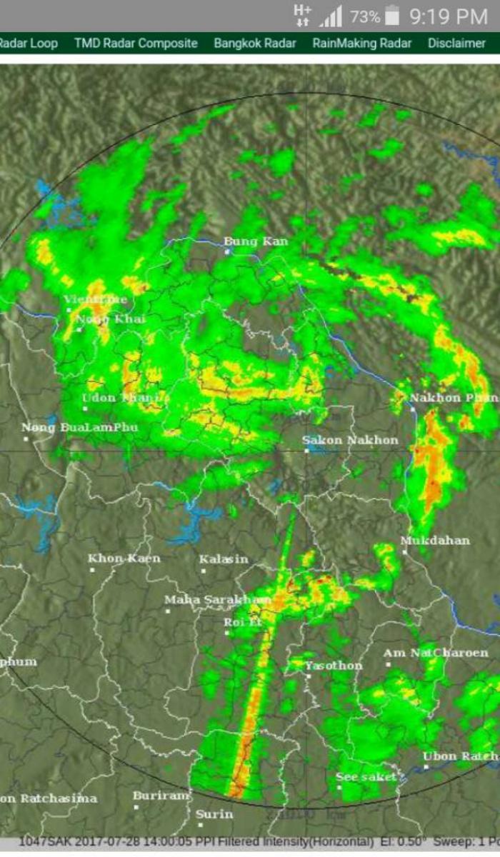ขณะที่ เมื่อเวลา 21.00 น. เรดาห์สกลนคร กลุ่มฝนยังคงปกคลุมภาคอีสานตอนบน โดยจะมีฝนตกชกต่อเนื่องบริเวณตอนบนของสกลนคร อ.วานรนิวาส และจังหวัดหนองคาย อุดรธานี คาดว่าคืนนี้จะตกหลายชั่วโมง