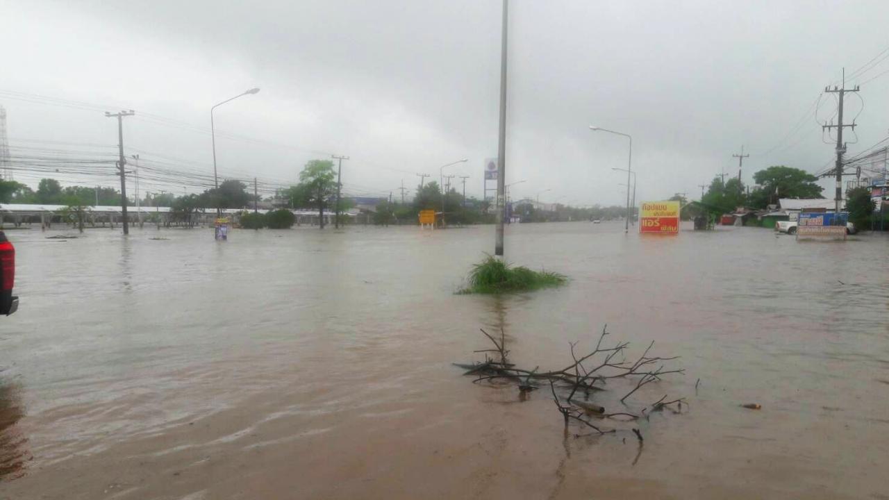 - เขตเทศบาลพังโคนบริเวณหน้าโรงพักพังโคนมีน้ำท่วมขังรถสามารถวิ่งผ่านได้อย่างช้าๆ