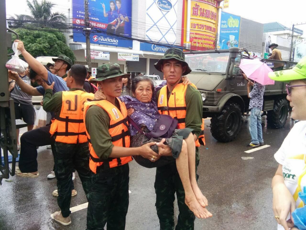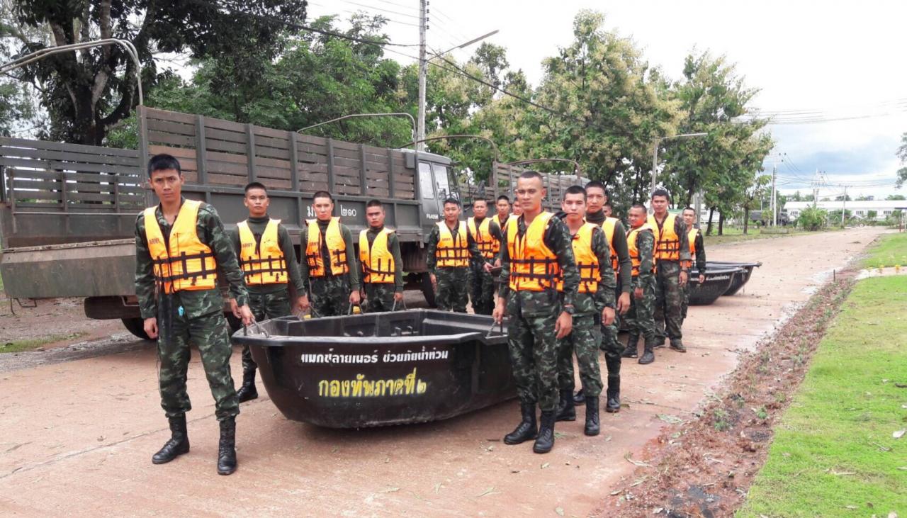 จ.มุกดาหาร กรมทหารราบที่ 3 ร่วมกับ กกล.สุรศักดิ์มนตรี และส่วนราชการ อ.หว้านใหญ่ ให้การช่วยเหลือในขั้นต้น ขนย้ายสิ่งของและกรอกกระสอบทราย เพื่อกั้นน้ำที่กำลังจะไหลเข้ามาท่วมบ้านเรือนประชาชนในพื้นที่ บ.โคกสวาท ม.9 และ บ.นาดี ม.4 ต.ป่งขาม อ.หว้านใหญ่ ซึ่งกระแสน้ำได้ไหลทะลักข้ามถนน เข้าท่วมบ้านเรือนราษฎร ประมาณ 9 หลัง และวัด 1 แห่ง ระดับน้ำ 30 ซม.