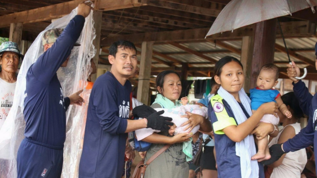 กองทัพเรือ โดยศูนย์บรรเทาสาธารณภัยหน่วยเรือรักษาความสงบเรียบร้อยตามลำแม่น้ำโขง (ศบภ.นรข.) รุดให้ความช่วยเหลือแม่และเด็กแรกเกิดที่กลับจากโรงพยาบาลจากอุทกภัยน้ำท่วมอีสานออกพื้นที่ได้อย่างหวุดหวิด