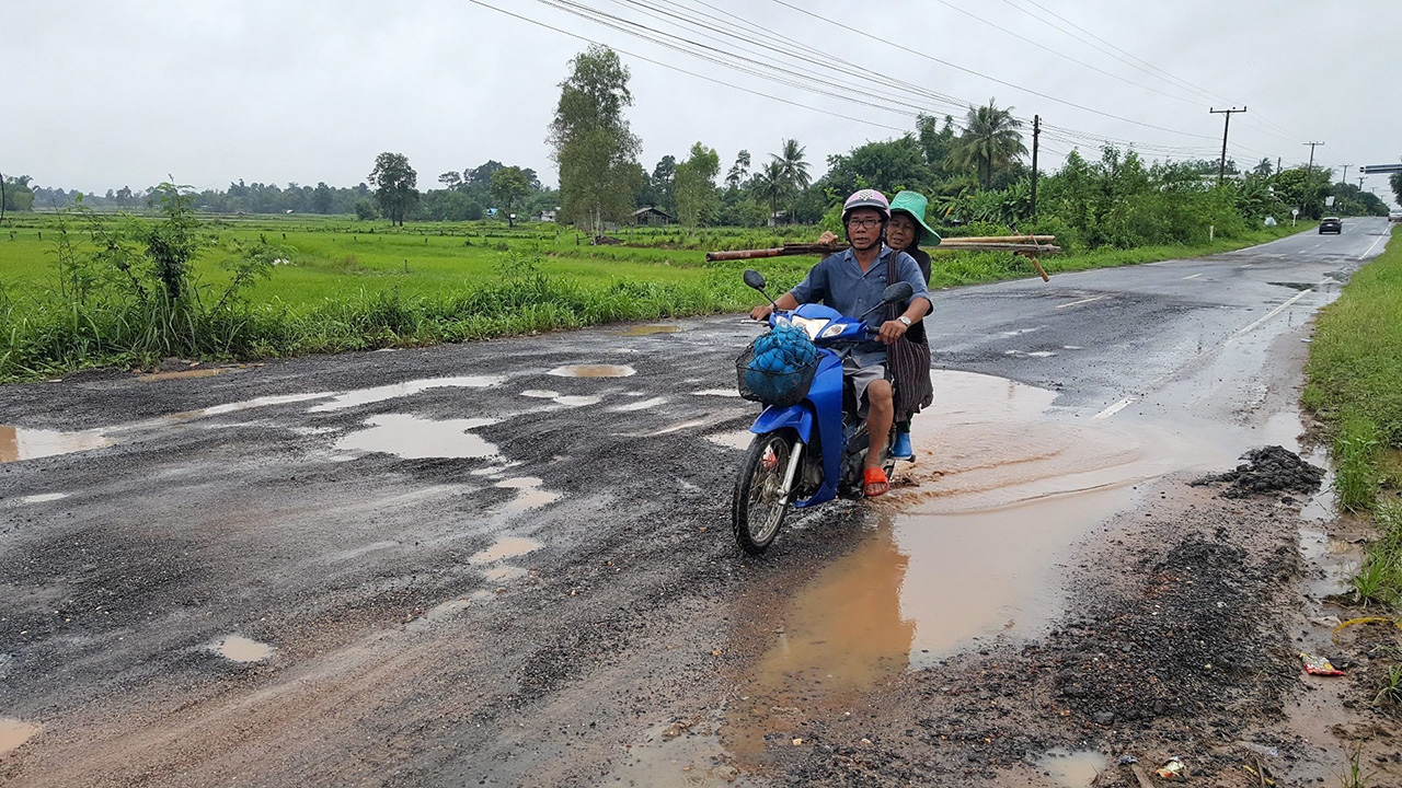 ชาวบ้านมุกดาหาร 2 อำเภอเดือดร้อนหนัก ถนนลาดยางกลายเป็นหลุมเป็นบ่อเดินทางสัญจรลำบาก เมื่อวันที่ 6 ส.ค. นายประยูร จันปุ่ม นายก อบต.ภูวง อ.หนองสูง จ.มุกดาหาร กล่าวว่า ถนนราดยางสายบ้านหนองสูง-บ้านป่งแดง ระยะทาง 25 กม. มีชาวบ้านใช้สัญจรไปมา 2 อำเภอคือ อ.หนองสูง และ อ.นิคมคำสร้อย ปัจจุบันชำรุดทรุดโทรมเป็นหลุมเป็นบ่อหลายหลุม มีผู้ประสบอุบัติเหตุล้มตายหลายราย ซึ่งอยู่ในความรับผิดชอบของกรมทางหลวงชนบท