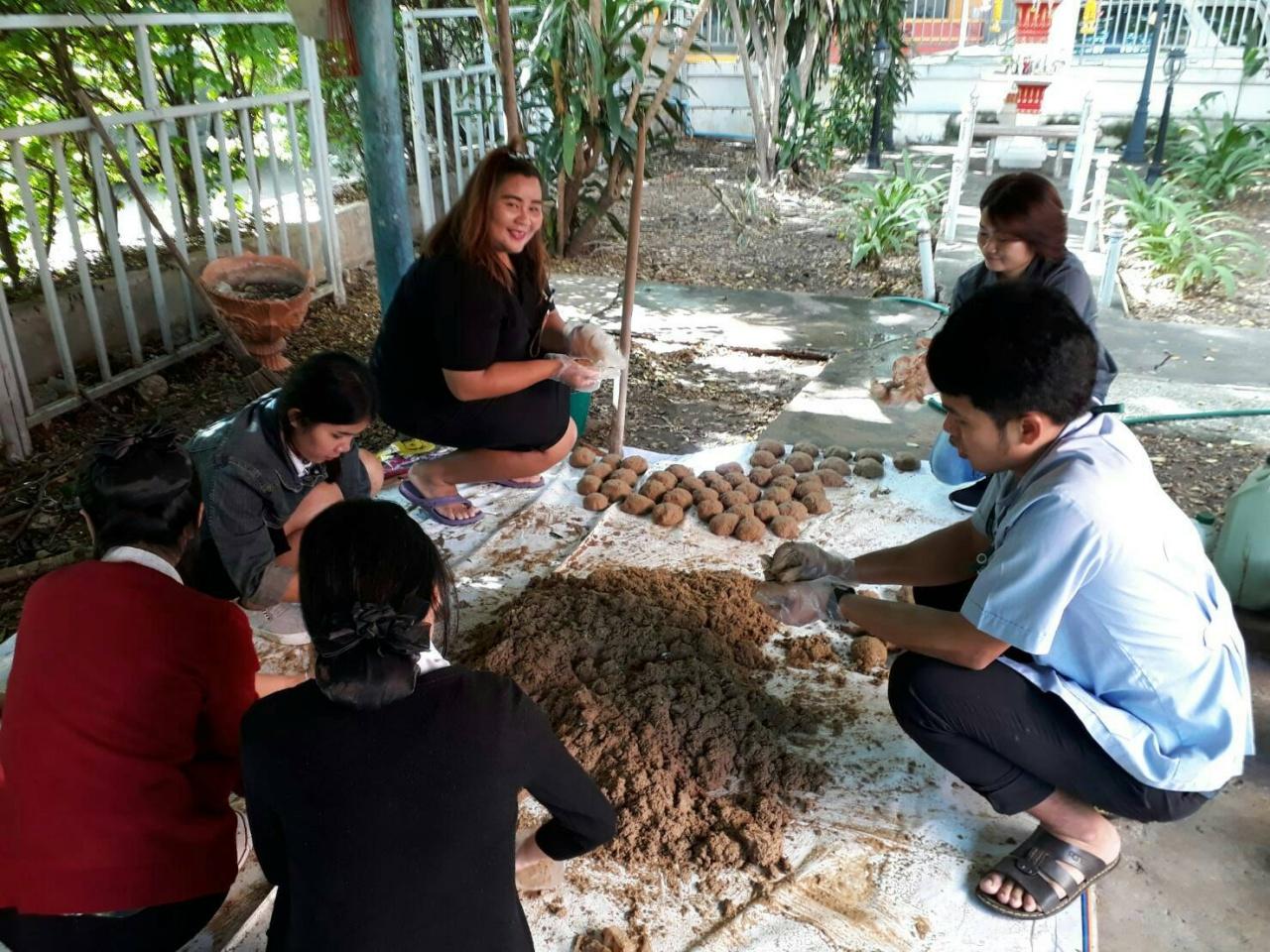 ทั้งนี้ เจ้าหน้าที่สาธารณสุขมีจำนวนจำกัดในการผลิต แต่ได้รับความร่วมมือจากคณะอาจารย์ นักศึกษา มหาวิทยาลัยราชภัฏร้อยเอ็ด มาช่วยในการผลิตอีเอ็มบอล ซึ่งผลิตจากหัวเชื้ออีเอ็ม จำนวน 1 ลิตร กากน้ำตาล จำนวน 2 กิโลกรัม น้ำสะอาด จำนวน 40 ลิตร รำอ่อน จำนวน 20 กิโลกรัม รำแก่ จำนวน 20 กิโลกรัม และทราย จำนวน 40 กิโลกรัม