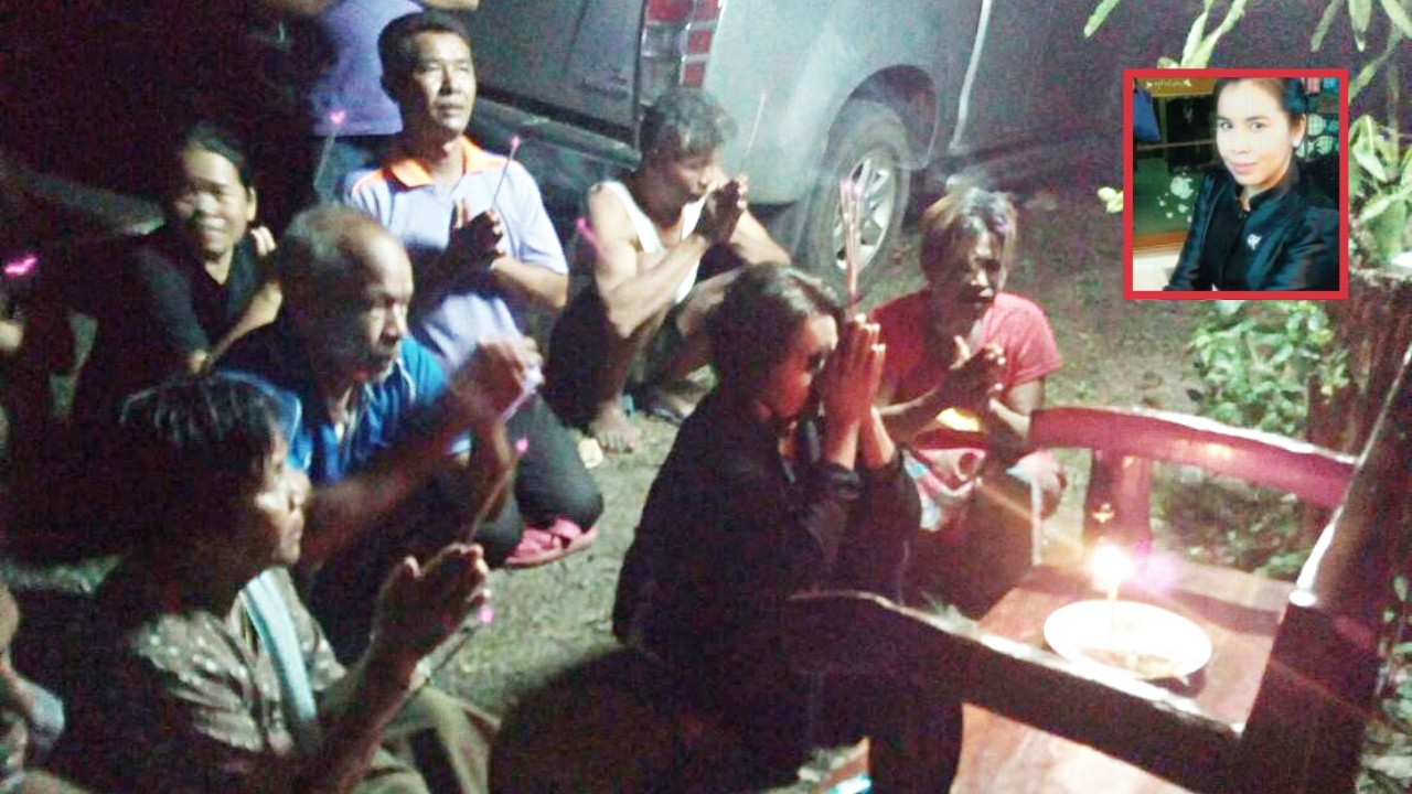 ทั้งนี้ พ่อและแม่ของ ผอ.อ้อย ได้นำญาติพี่น้องร่วมกันสวดมนต์ไหว้พระก่อนร่วมกันอธิษฐานขอให้สิ่งศักดิ์สิทธิ์ดลบันดาล พึ่งกลิ่นธูปนำทางจุดเรียกหาลูกสาว หากเสียชีวิตแล้วก็ให้มาดลจิตดลใจพ่อแม่ให้รับรู้ และตามหาให้พบว่าอยู่ที่ไหน แต่หากยังมีชีวิตอยู่ ให้รีบกลับมาบ้านโดยเร็ว
